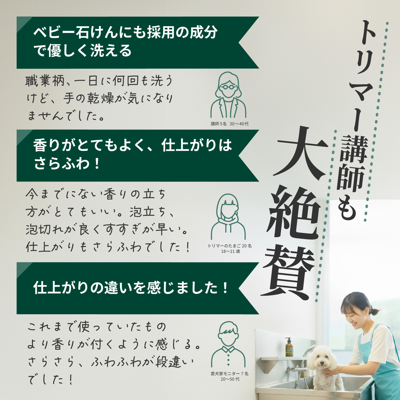 ほのかに香るシトラスの香り。吸着泡で仕上がりふんわり、ワンランク上の毛並みに!