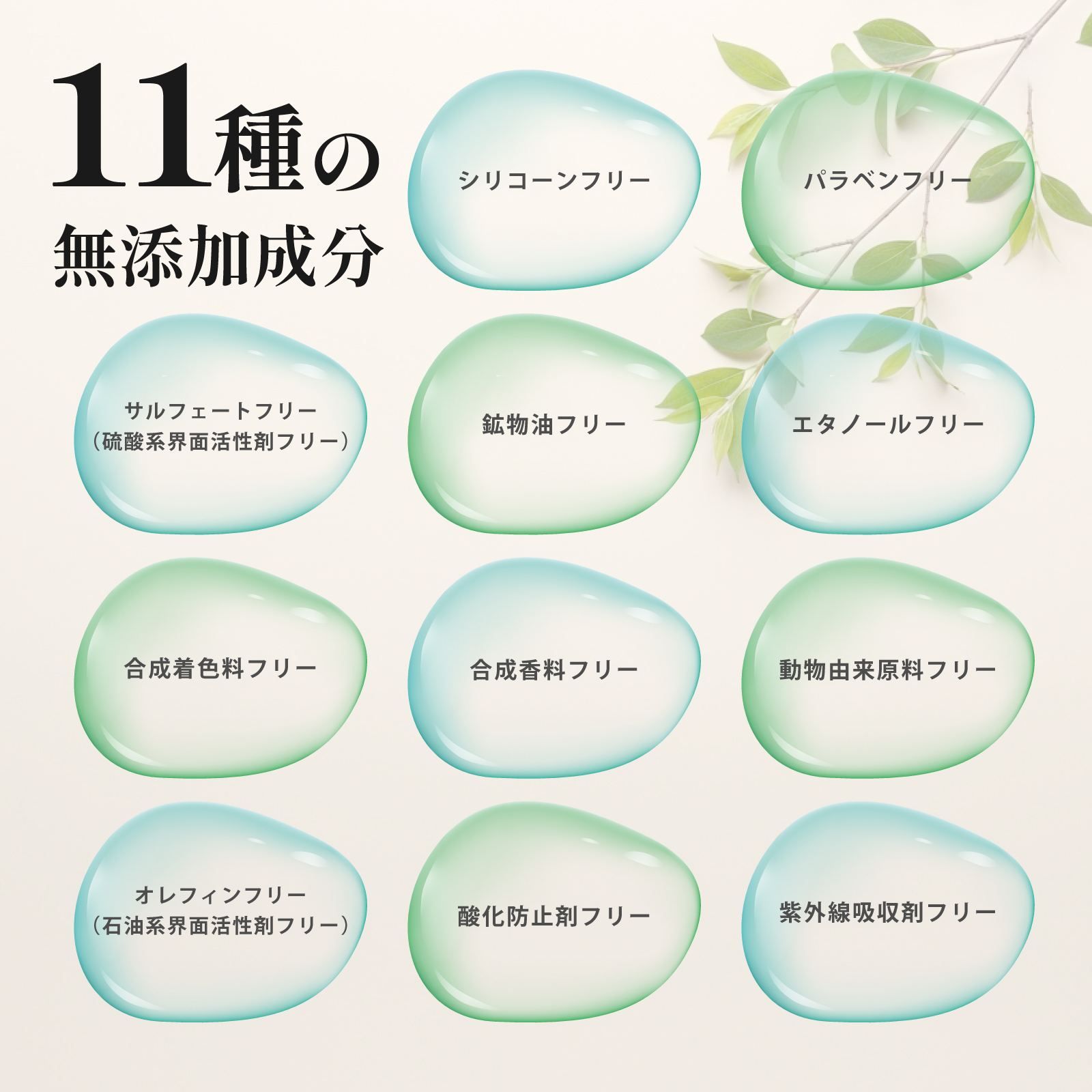 鉱物油・エタノール・合成着色料・合成香料・動物由来原料