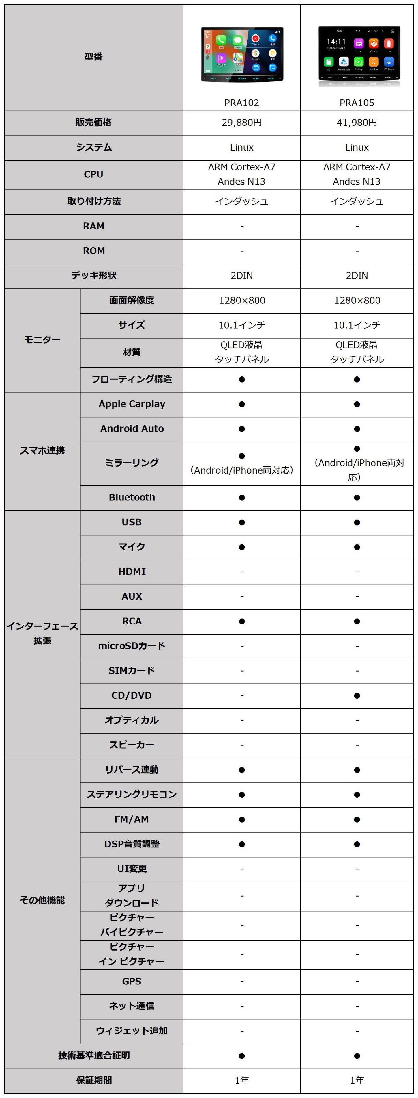 ディスプレイオーディオ 10.1インチ android 4GB+64GB アンドロイドナビ 1din bluetooth carplay android auto ミラーリング USB DSP フローティング PRA101