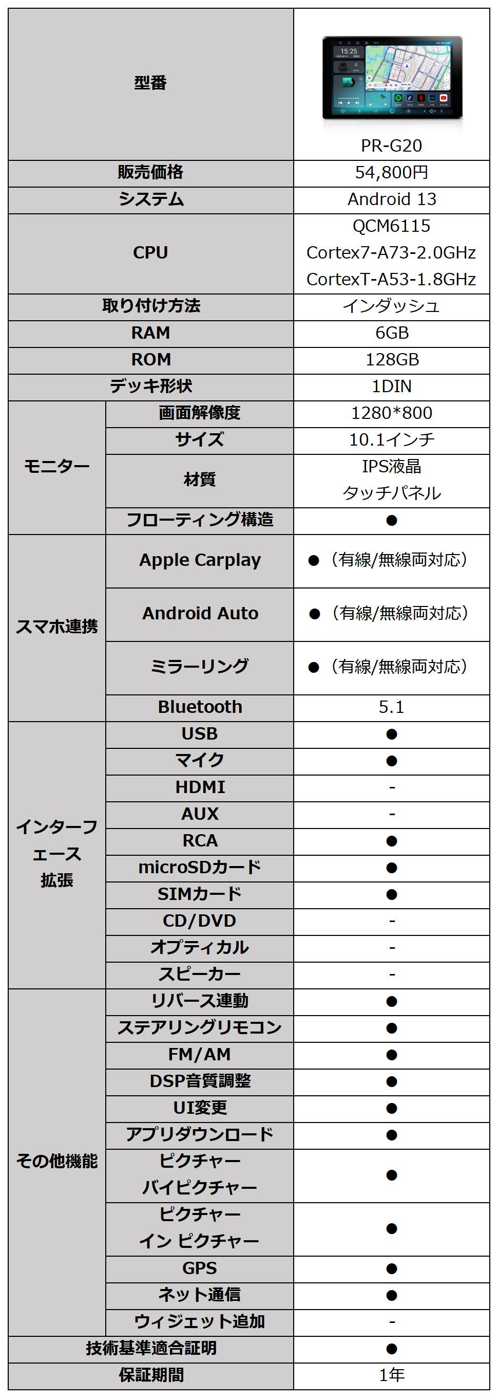 【NEW】ディスプレイオーディオ QCM6115 6GB+128GB 1din android13 カーオーディオ bluetooth carplay android auto ミラーリング 10.1インチ HDMI dsp PR-G20