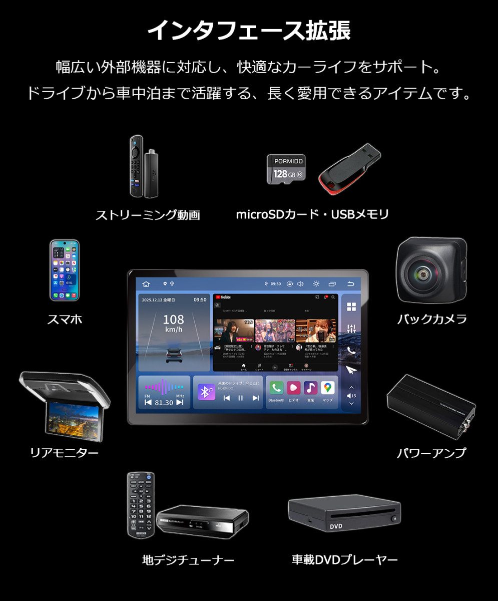 ディスプレイオーディオ 11.8インチ 6+128GB 2000*1200 カーオーディオ 1din アンドロイドナビ apple carplay android auto カーナビ ミラーリング FM PR-G10
