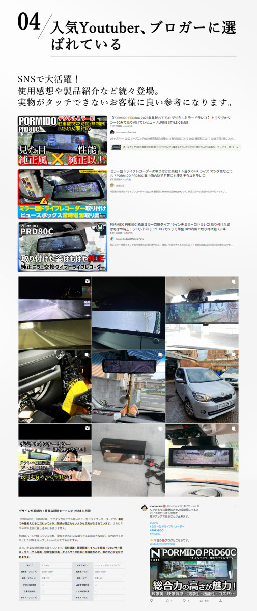 ドライブレコーダー 前後 ミラー 型 純正ミラー交換 2カメラ 分離 型 11インチ デジタルインナーミ ラー 爆光液晶 55FPS+60FPS ズーム 車検対応 1年保証 PRD8XC