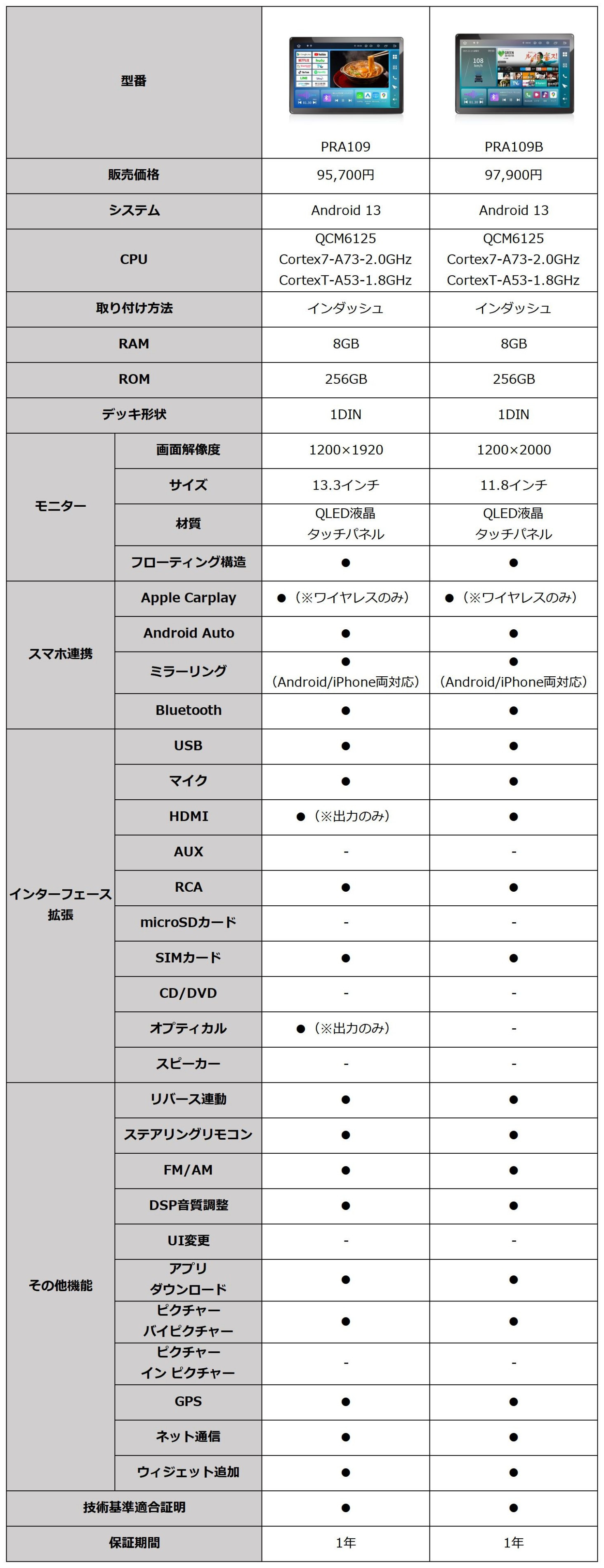 ディスプレイオーディオ 13.3インチ android13 HDMI入出力 カーオーディオ QCM6125 8GB+256GB 1920*1200 carplay android auto ミラーリング 1年保証 PRA109B