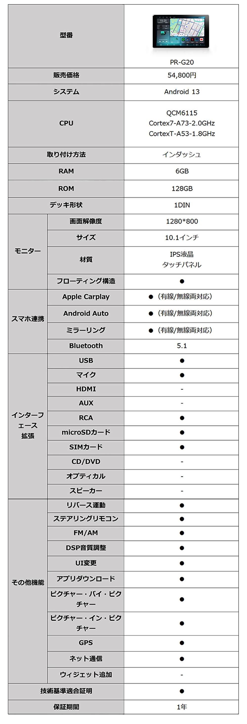 【NEW】ディスプレイオーディオ QCM6115 6GB+128GB 1din android13 カーオーディオ bluetooth carplay android auto ミラーリング 10.1インチ HDMI dsp PR-G20