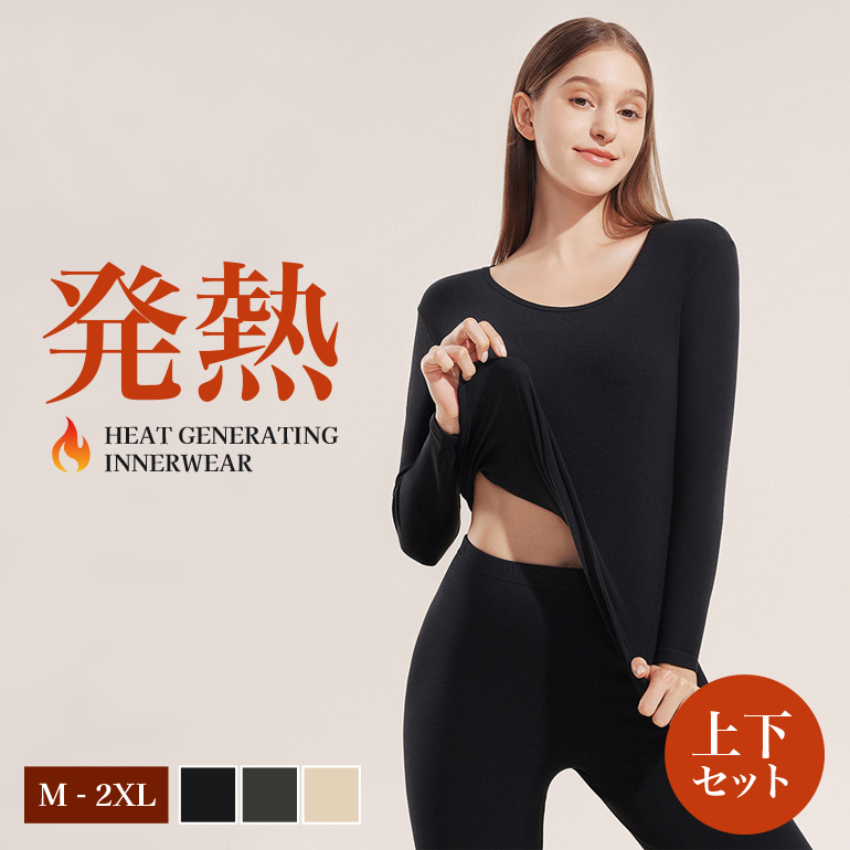 発熱インナー レディース 上下セット 長袖 保温 インナーシャツ 肌着 ルームウエア 敏感肌 ヒートテック インナー レギンス セット 上下 防寒 uネック