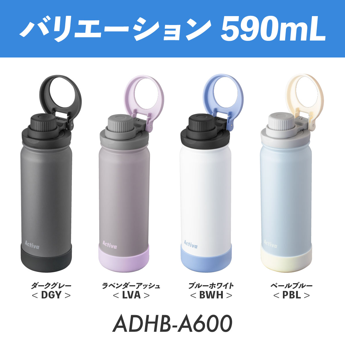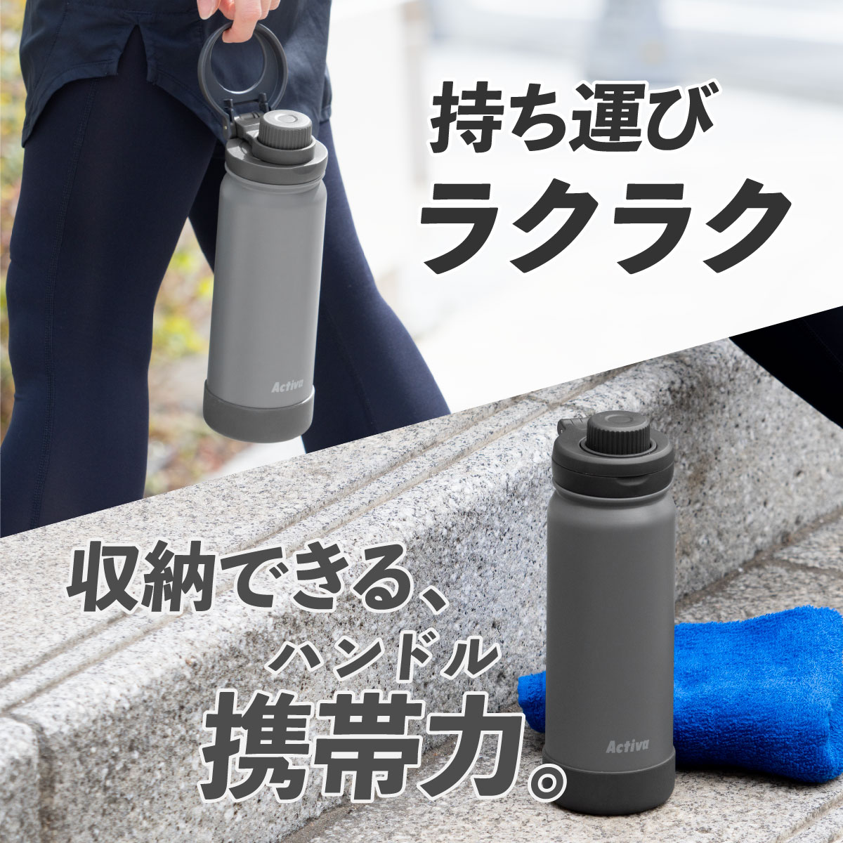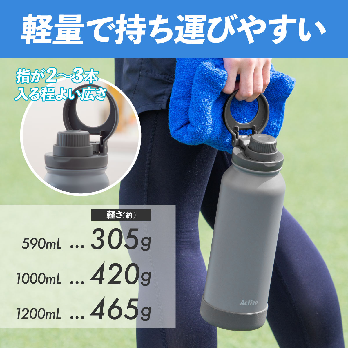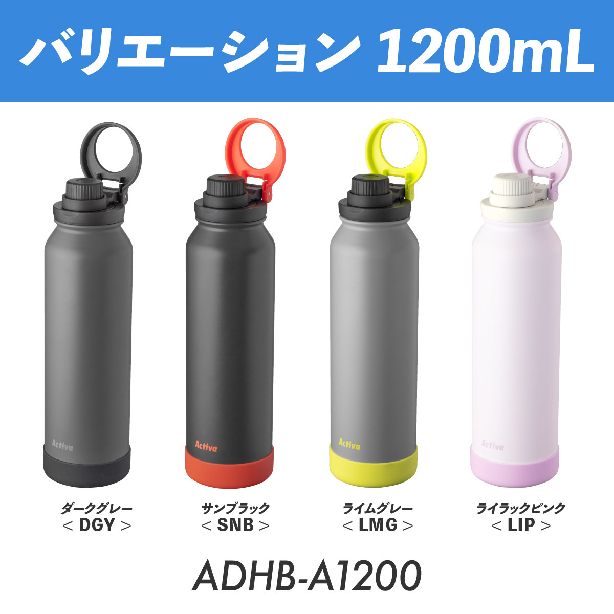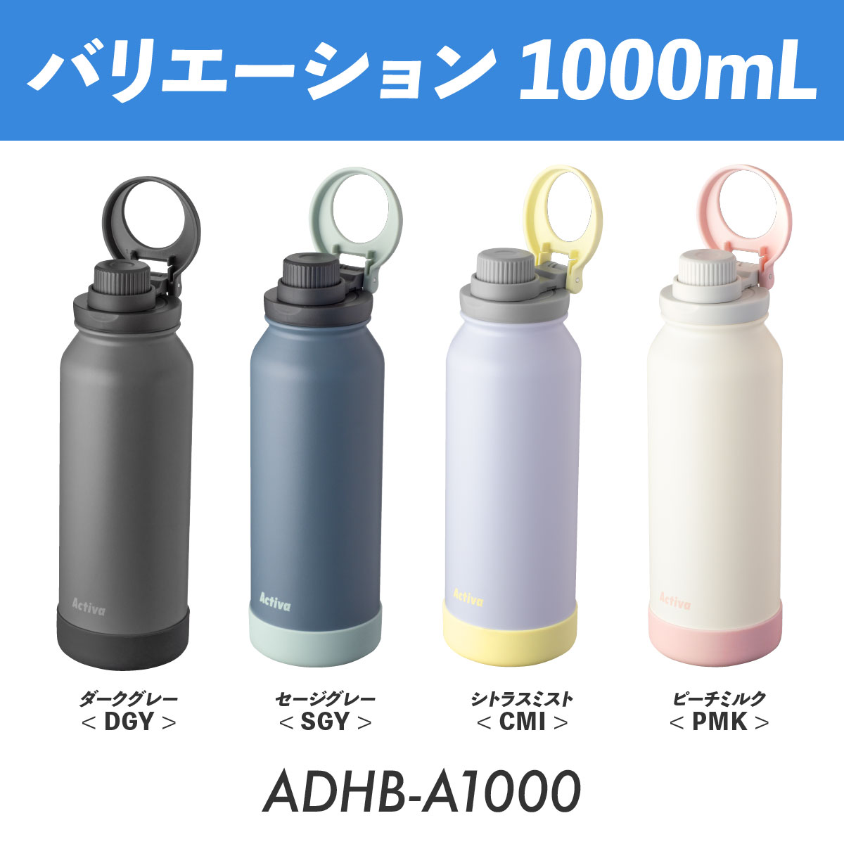 水筒 1リットル 1L 保冷 真空断熱 ステンレス 軽量 ダイレクトボトル 直飲み ハンドル付き スポーツドリンク対応 スポーツ ジム 運動 アクティバ ADHB-A1000