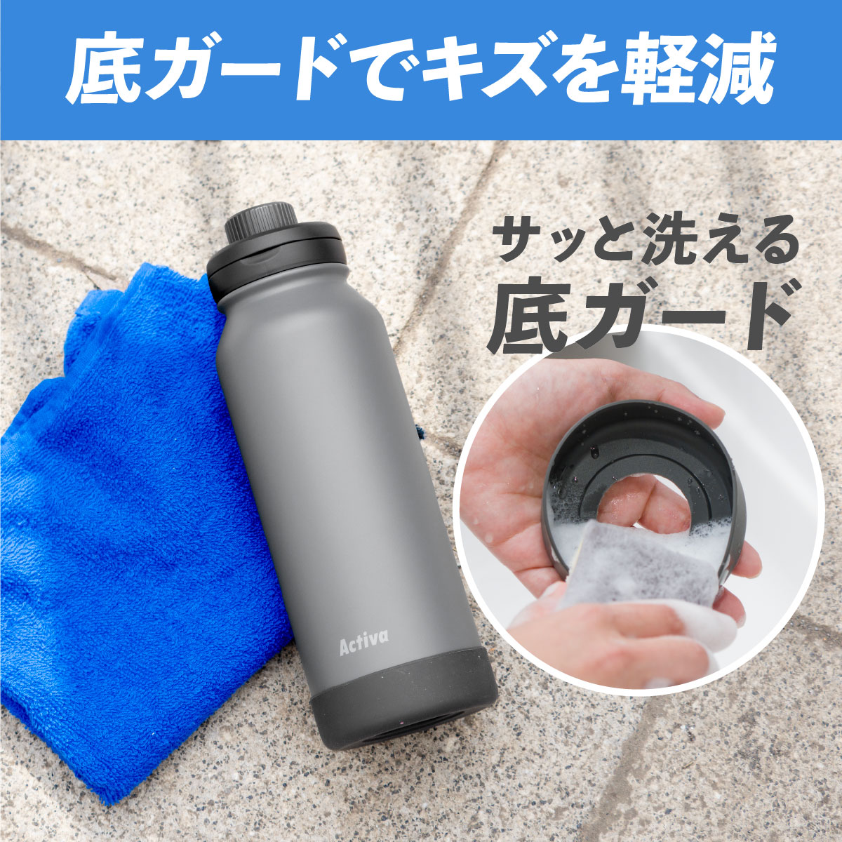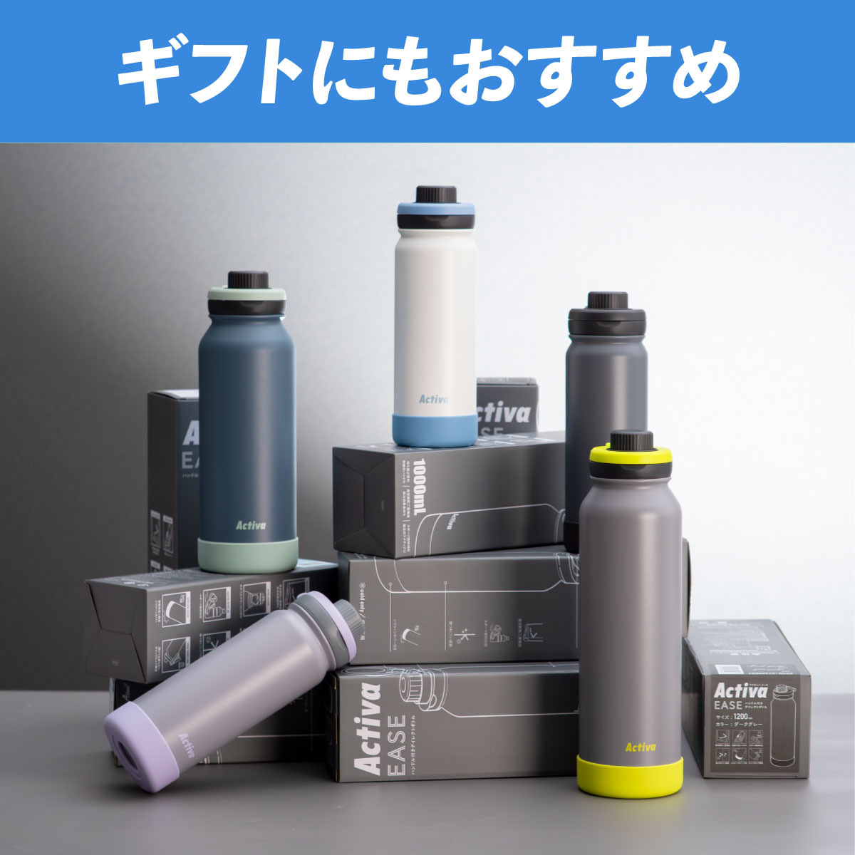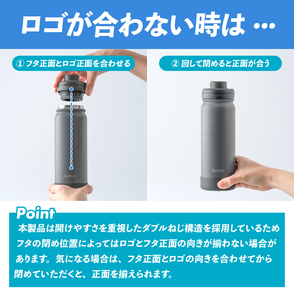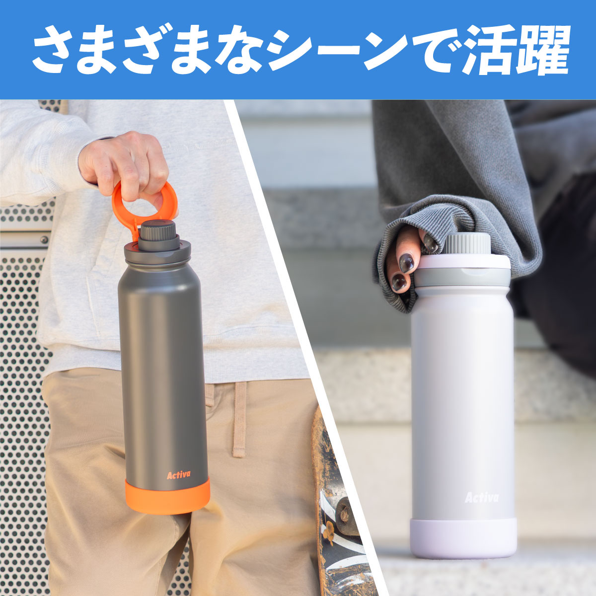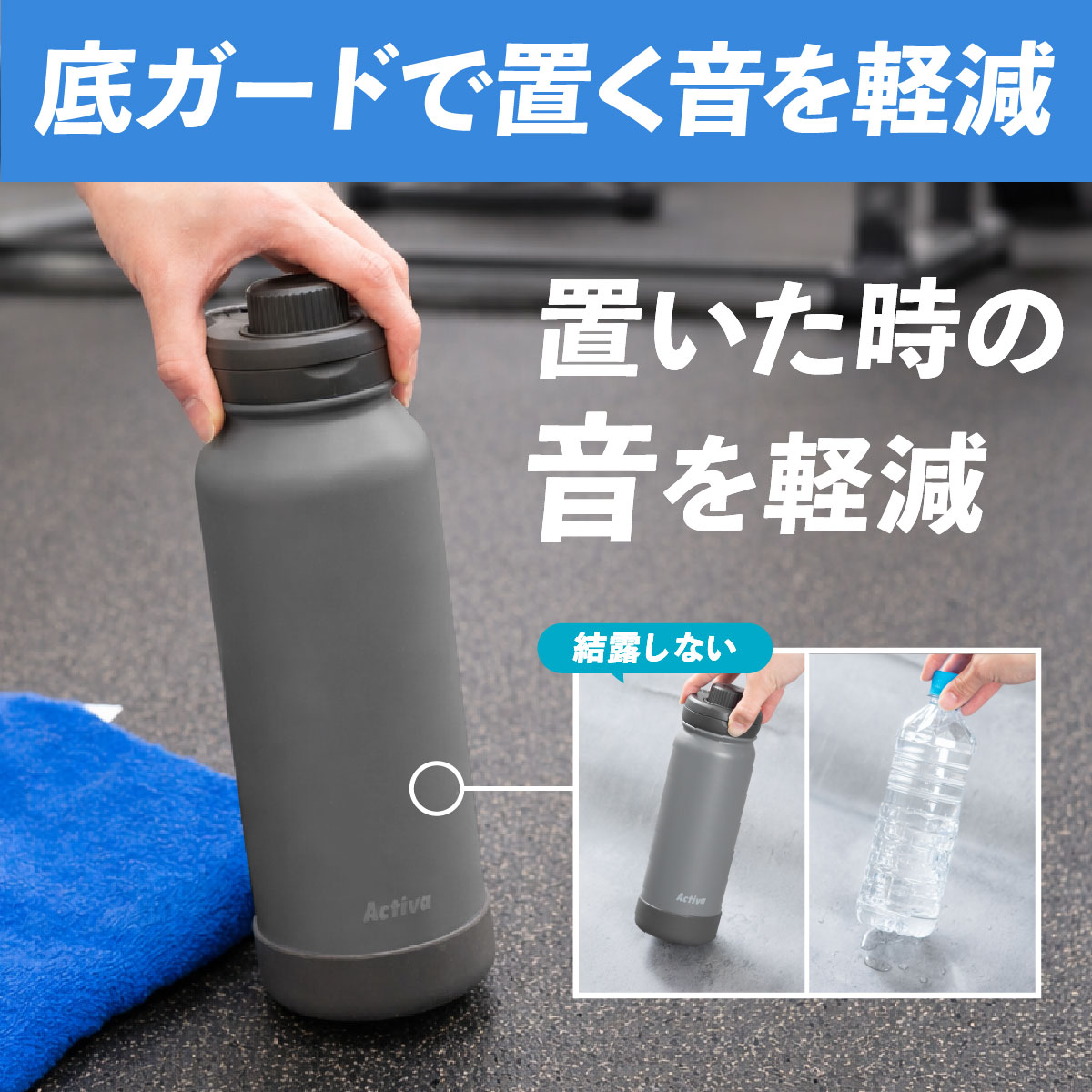 水筒 1リットル 1L 保冷 真空断熱 ステンレス 軽量 ダイレクトボトル 直飲み ハンドル付き スポーツドリンク対応 スポーツ ジム 運動 アクティバ ADHB-A1000
