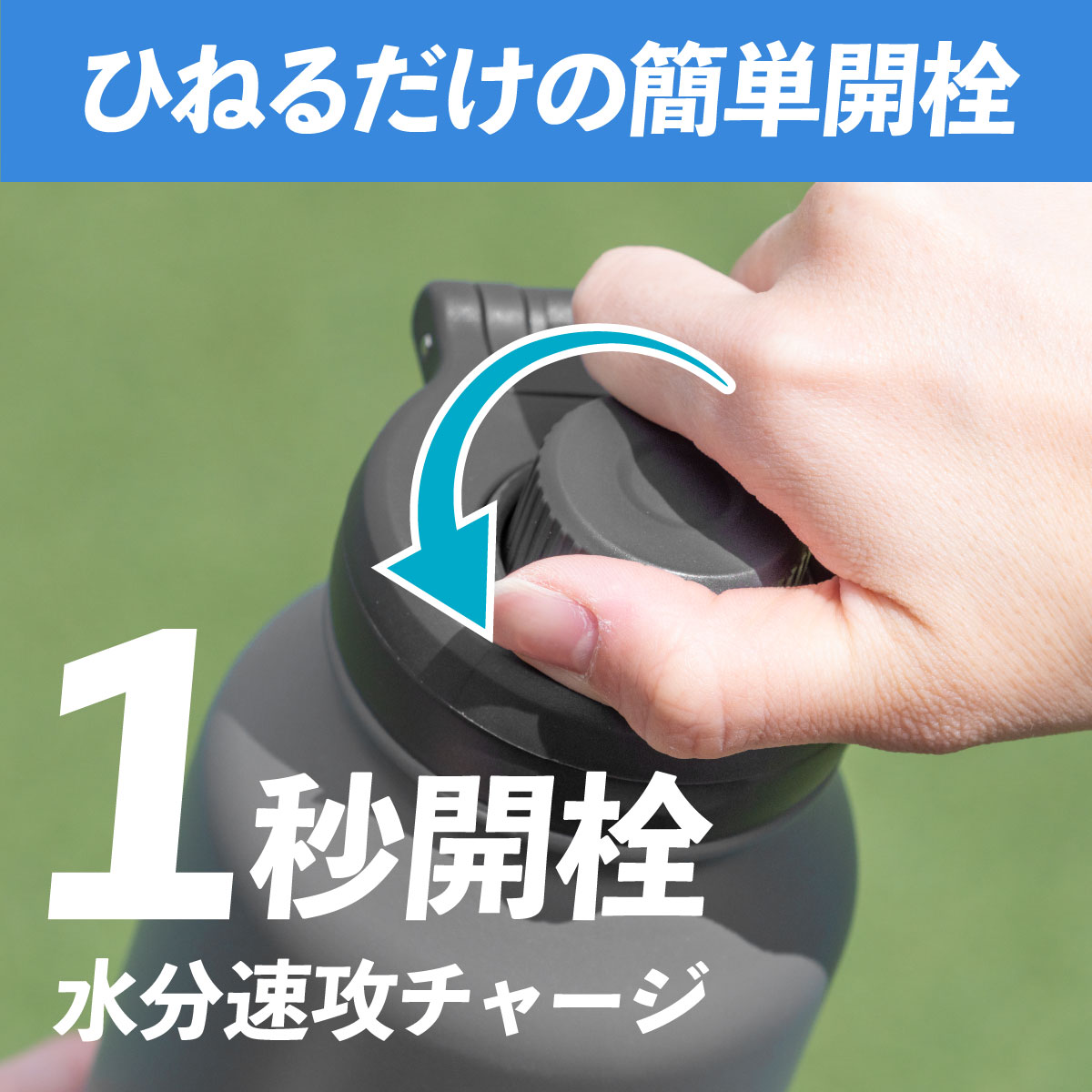 ペットボトルような操作感に加え、開栓に必要なひねり回数を抑えたクイックオープン設計を採用