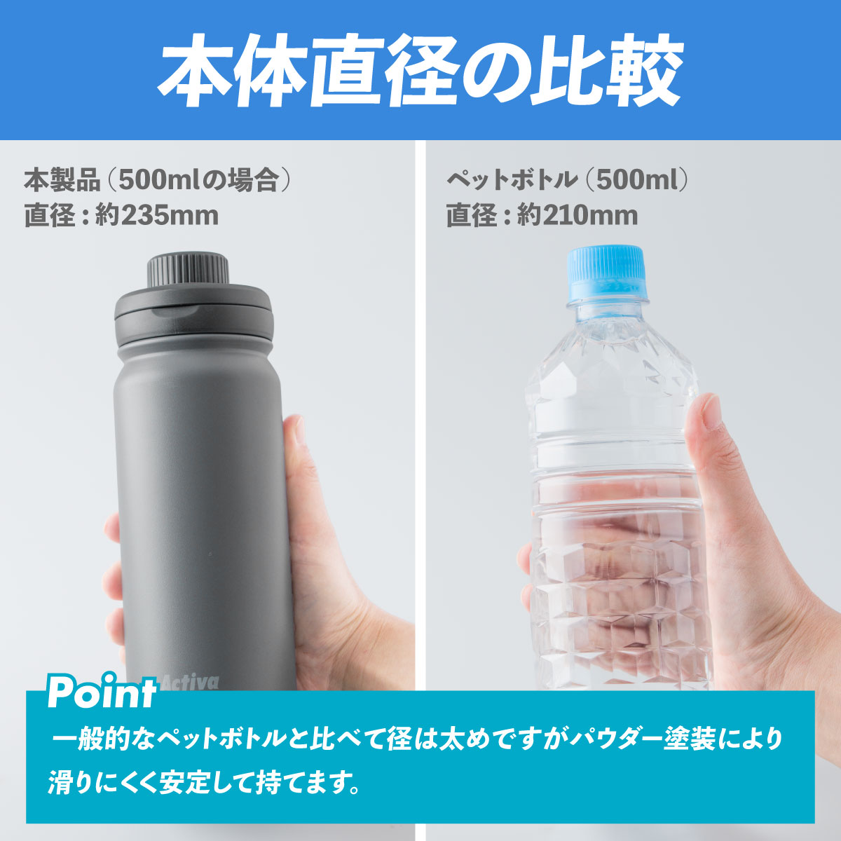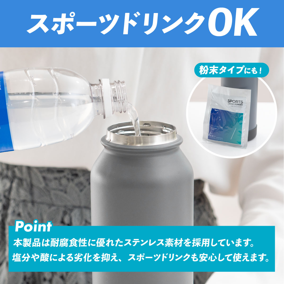 真空断熱構造で冷たさ長持ち。スポーツドリンク対応