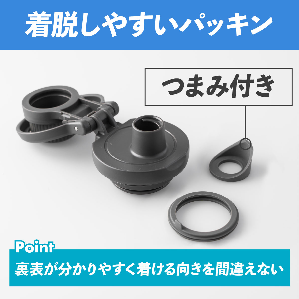 洗いやすい広口&つまみ付きで着脱しやすいパッキンでお手入れも簡単。
