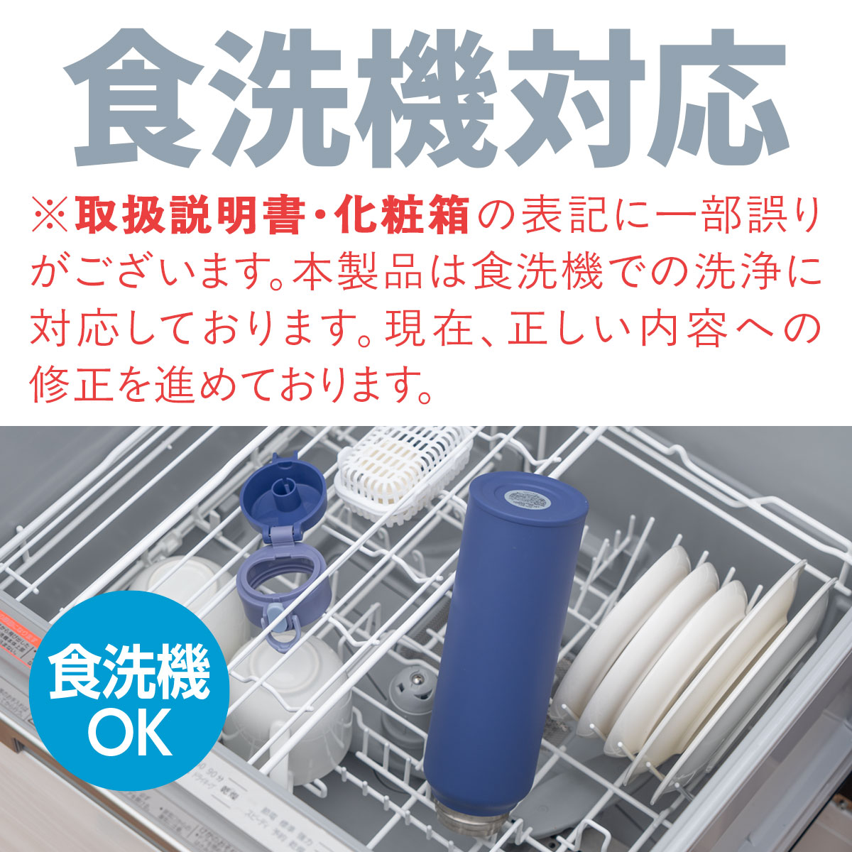 取扱説明書・化粧箱の表記に一部誤りがございます。本製品は食洗機での洗浄に対応しております。現在、正しい内容への修正を進めております。