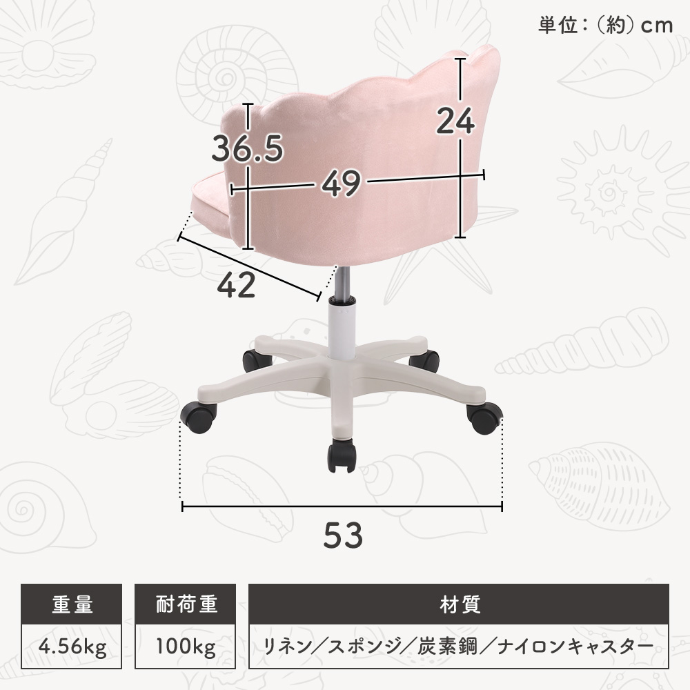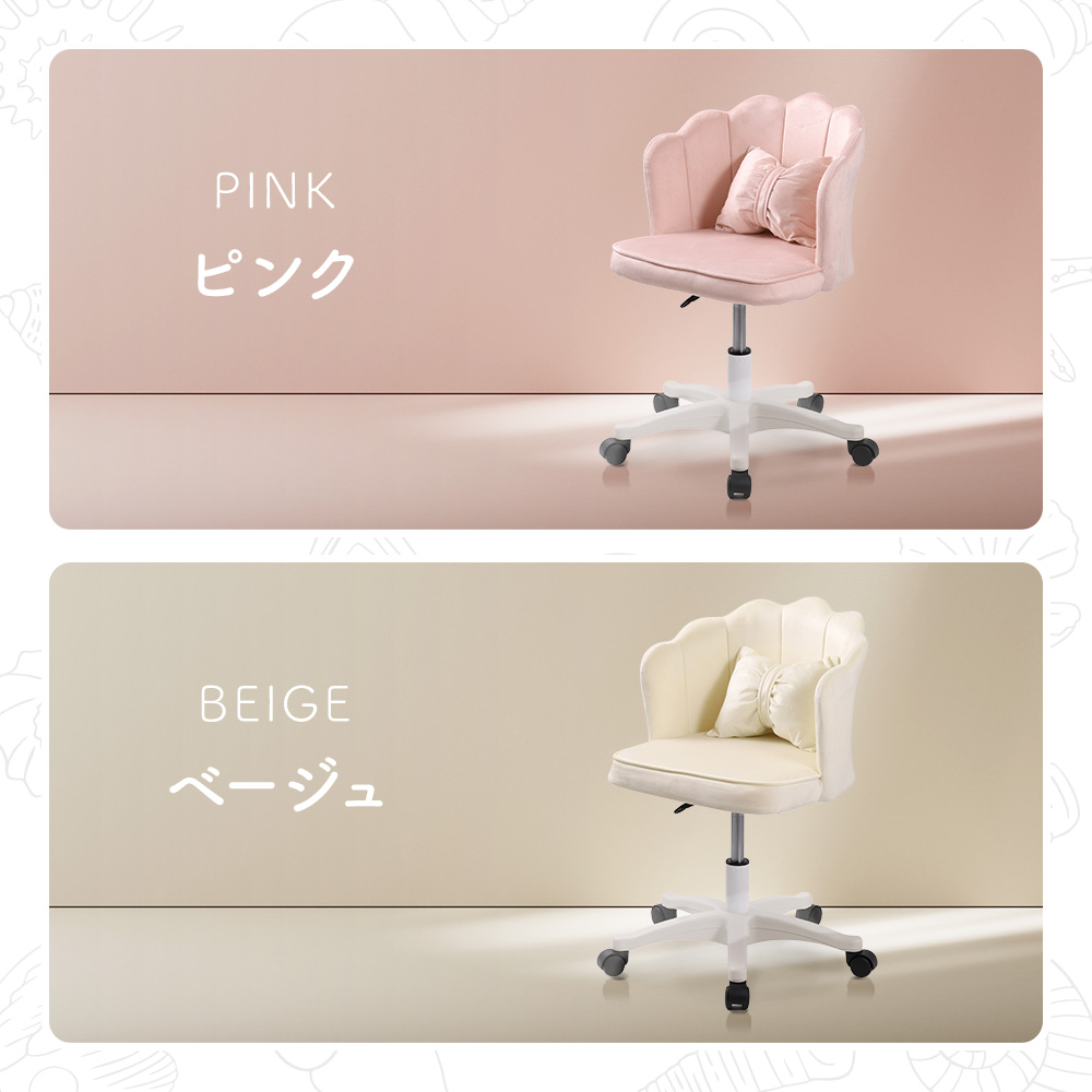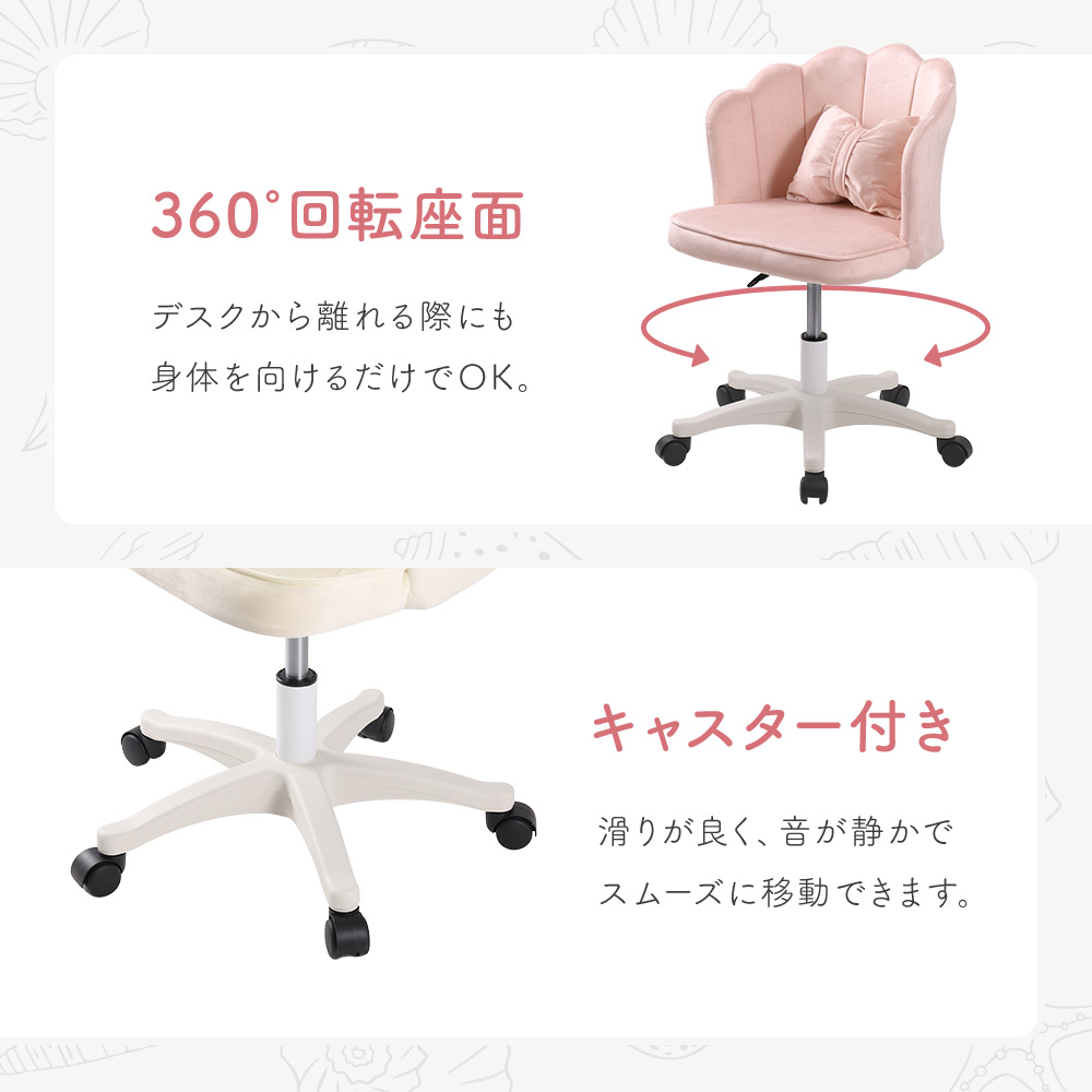 貝殻をイメージしたふっくらとした曲線がかわいいデスクチェアは、