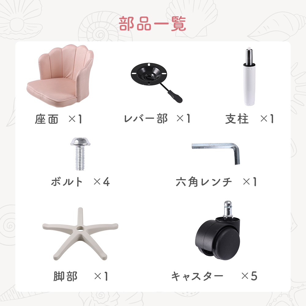 シェルモチーフチェア リボン型クッション付き