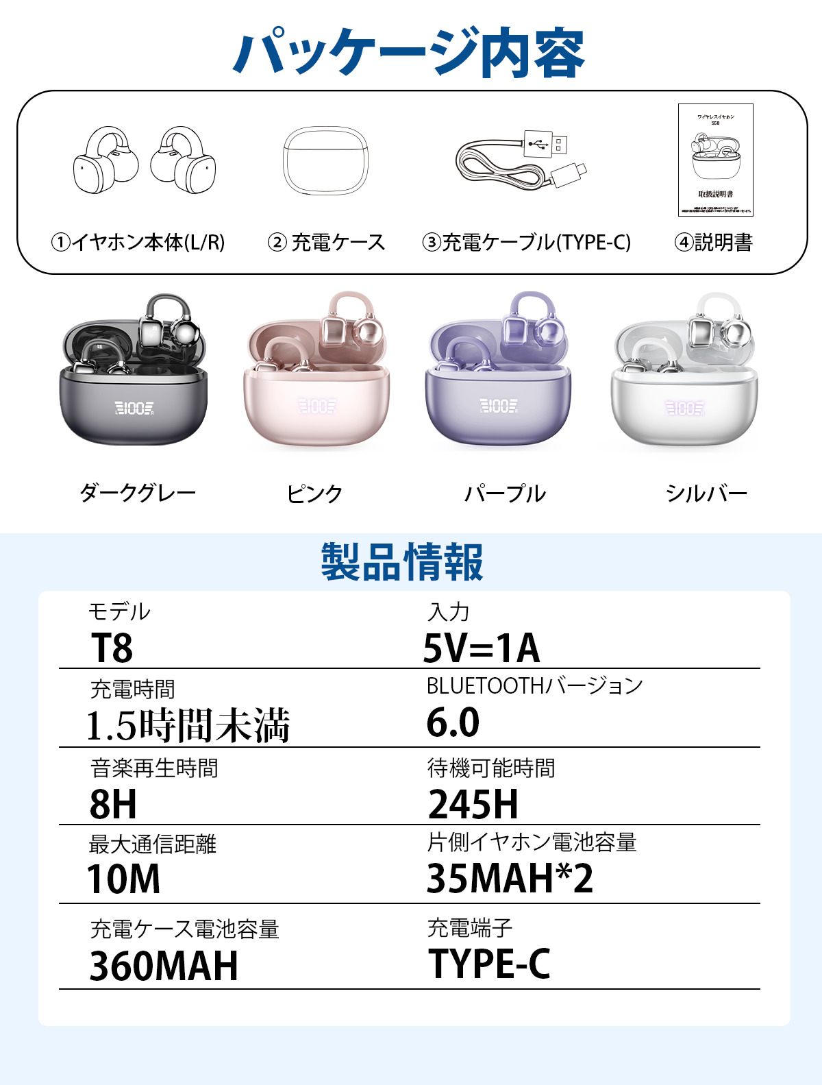 ※稼働時間、充電時間は、ご使用環境、音量、音源などの条件により影響を受けます。予めご了承くだだい。