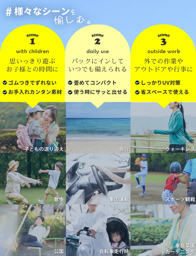 指出しタイプなので作業がしやすく、手の甲も紫外線からしっかりガードします