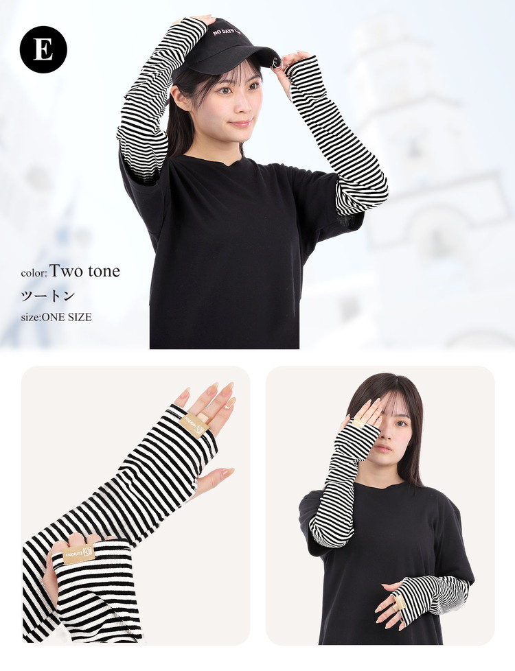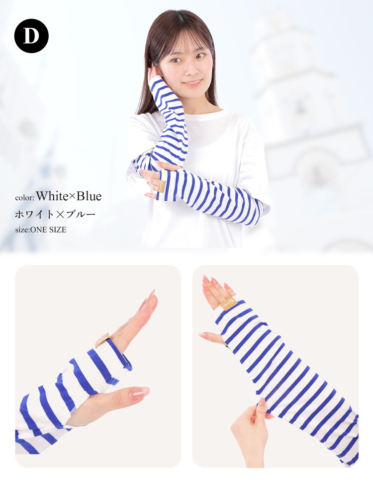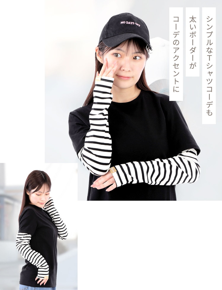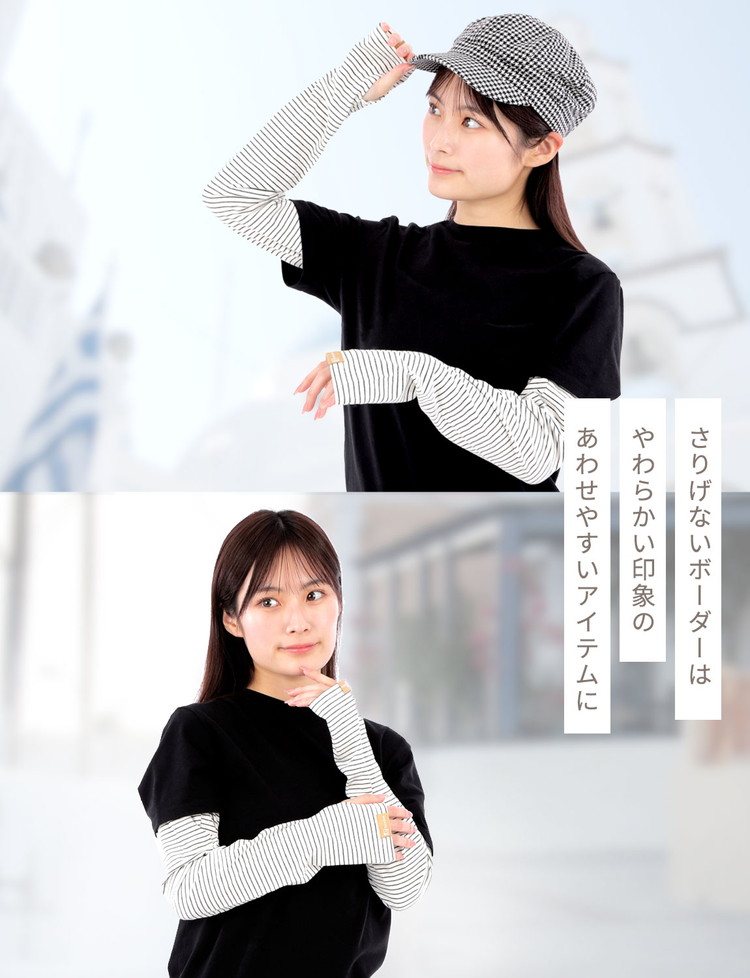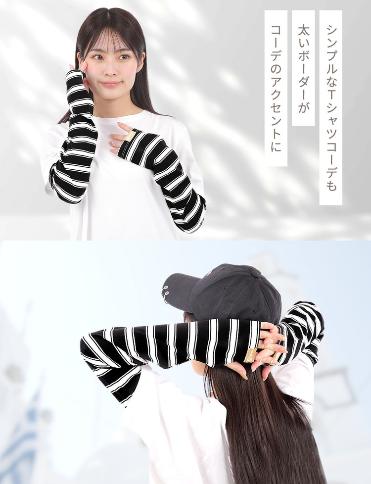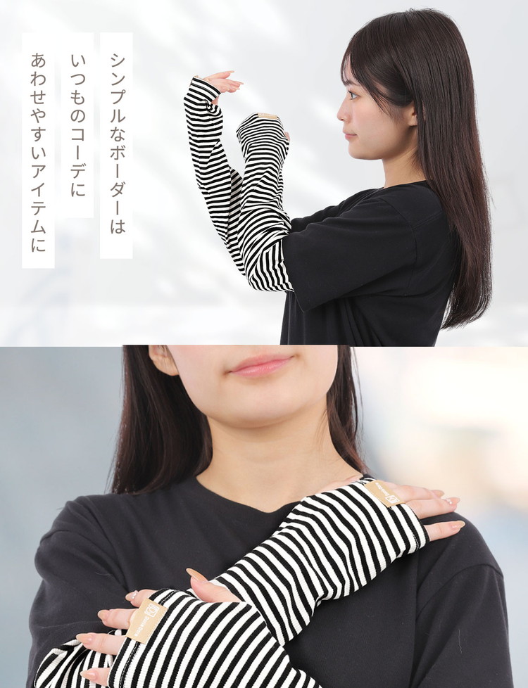 【ゆったりタイプで気になる二の腕をカバー♪おしゃれな ボーダーアームカバー】