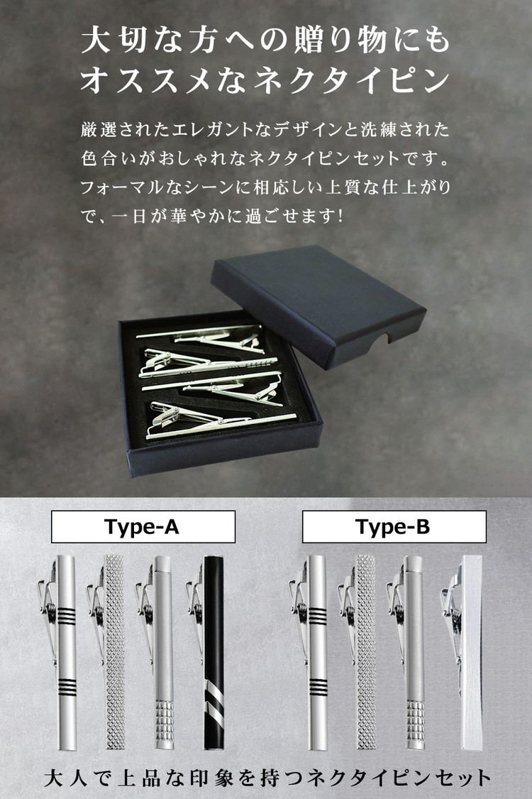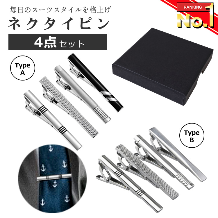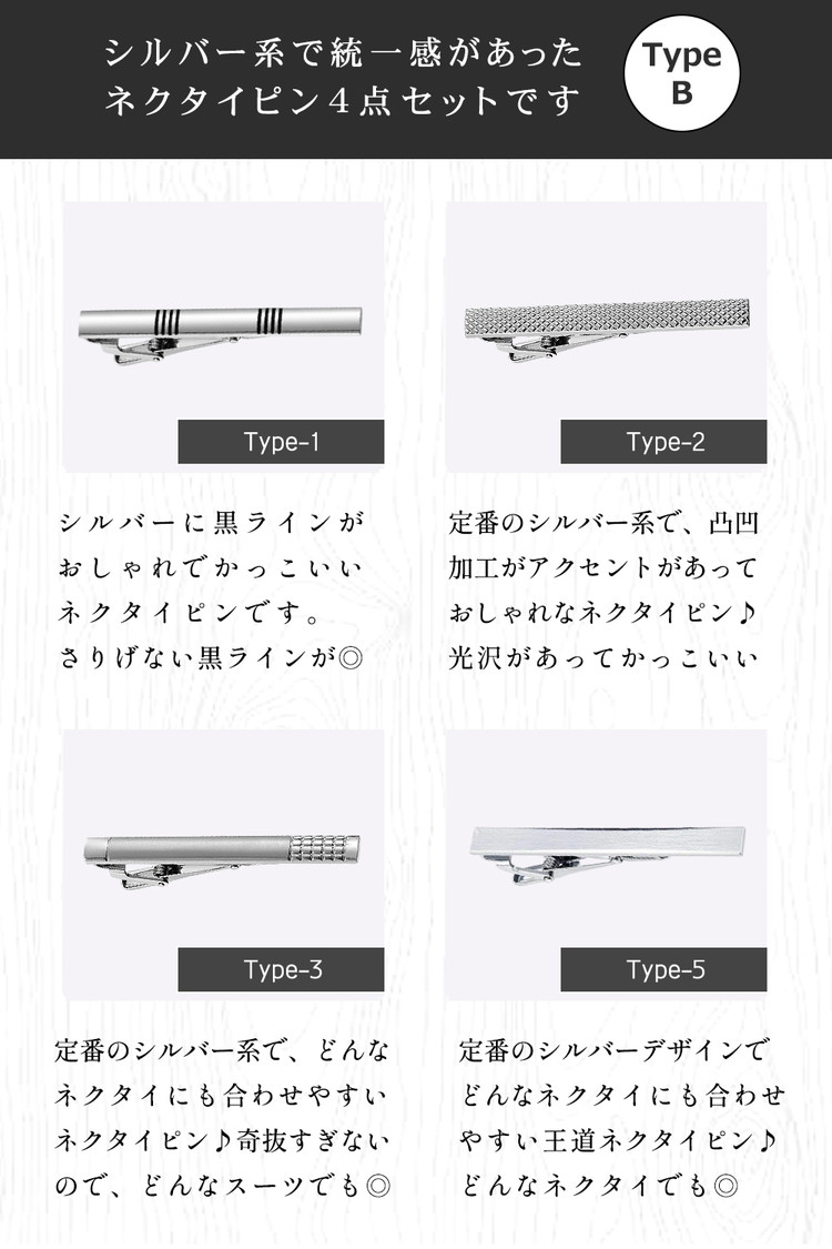 ネクタイピン タイピン セット 4点セット おしゃれ 高級 真鍮 プレゼント メンズ 男性 父の日 結婚式 ネクタイ シルバー ビジネス フォーマル ブランド
