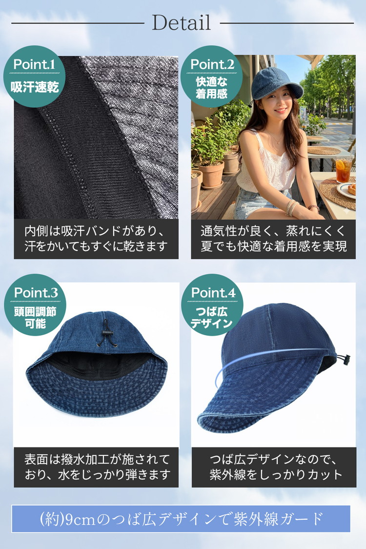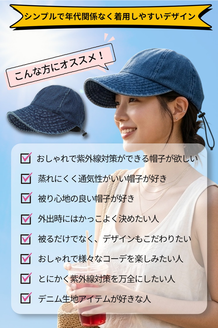 帽子 レディース つば広 キャップ 日よけ uvカット デニム コットン 日焼け防止 日焼け ランニングキャップ ゴルフ 夏用 母の日 uv 日焼け テニス 夏 遮光