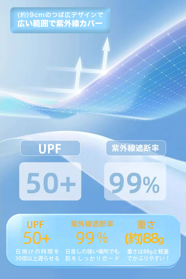UPF50+で98%以上の紫外線を防ぐ効果があります