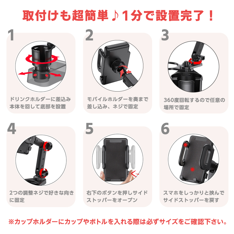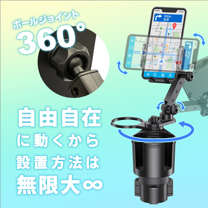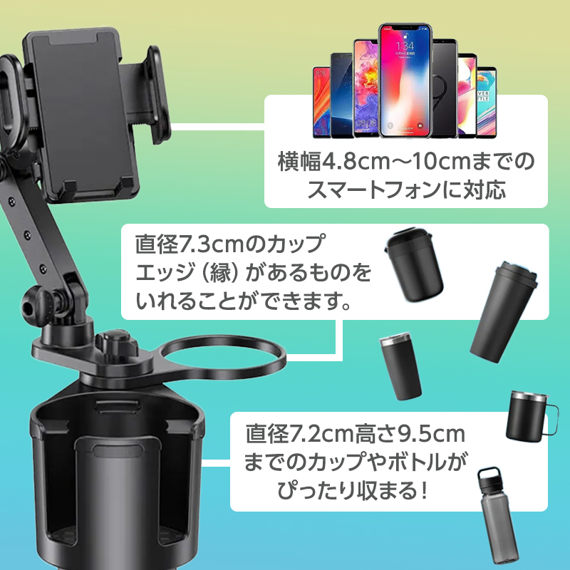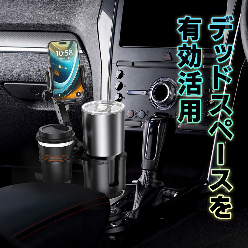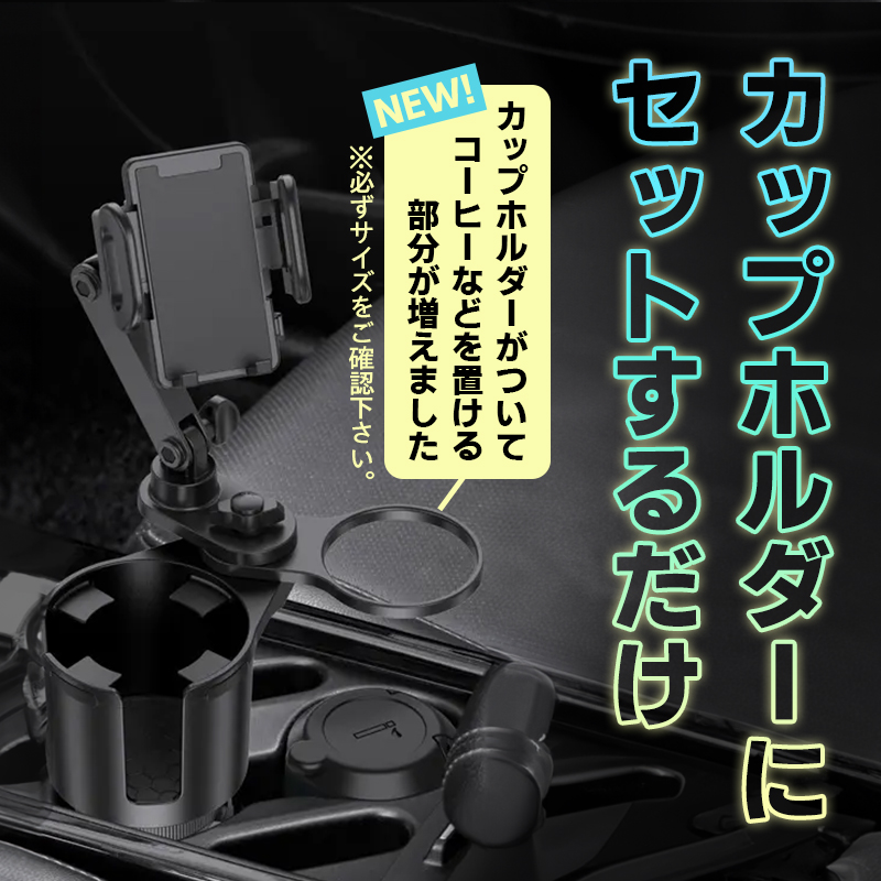 ドリンクホルダー 車 スマホホルダー iPhone android 2in1デザイン 車 スマホ ネック調整可能 カップ 多機能 爆買