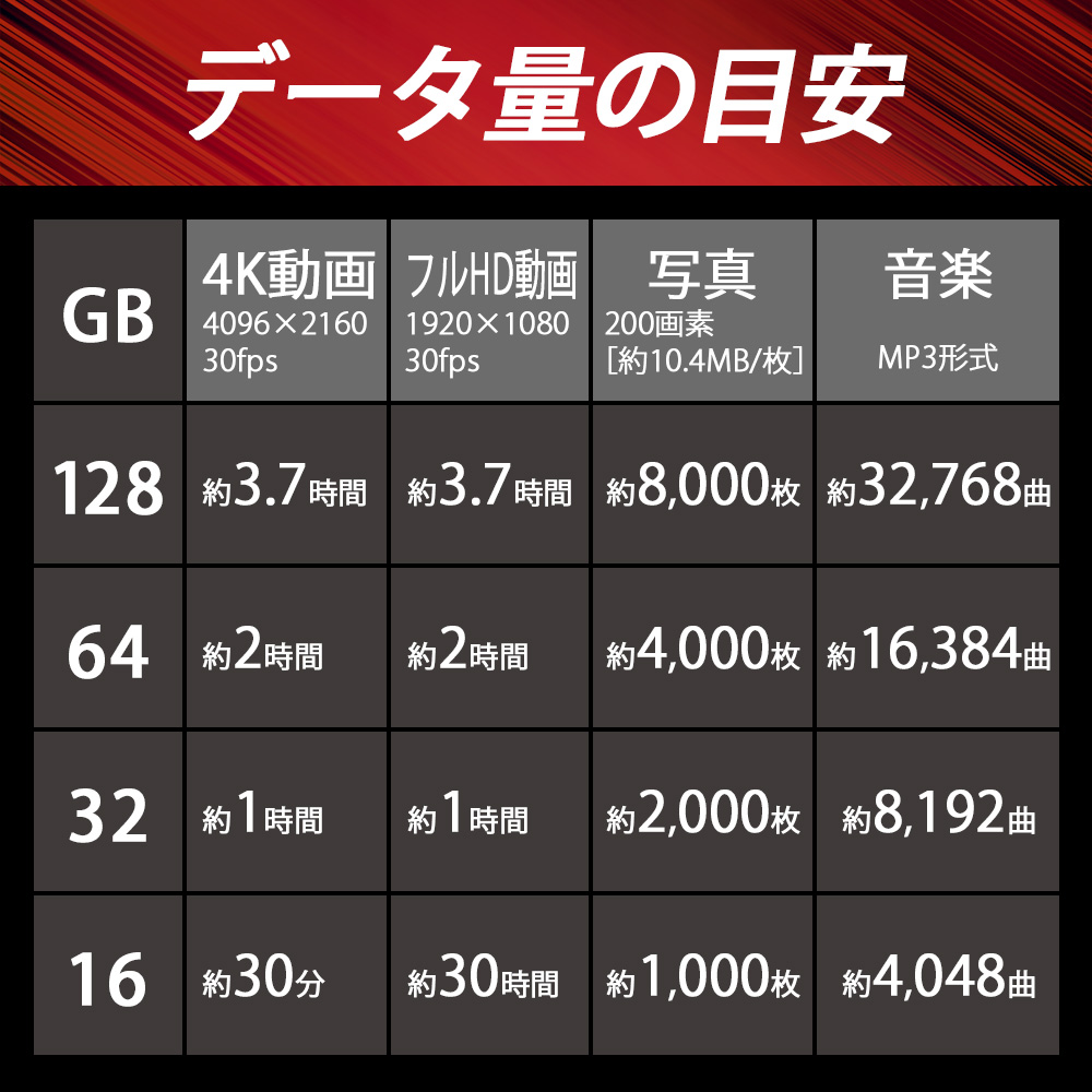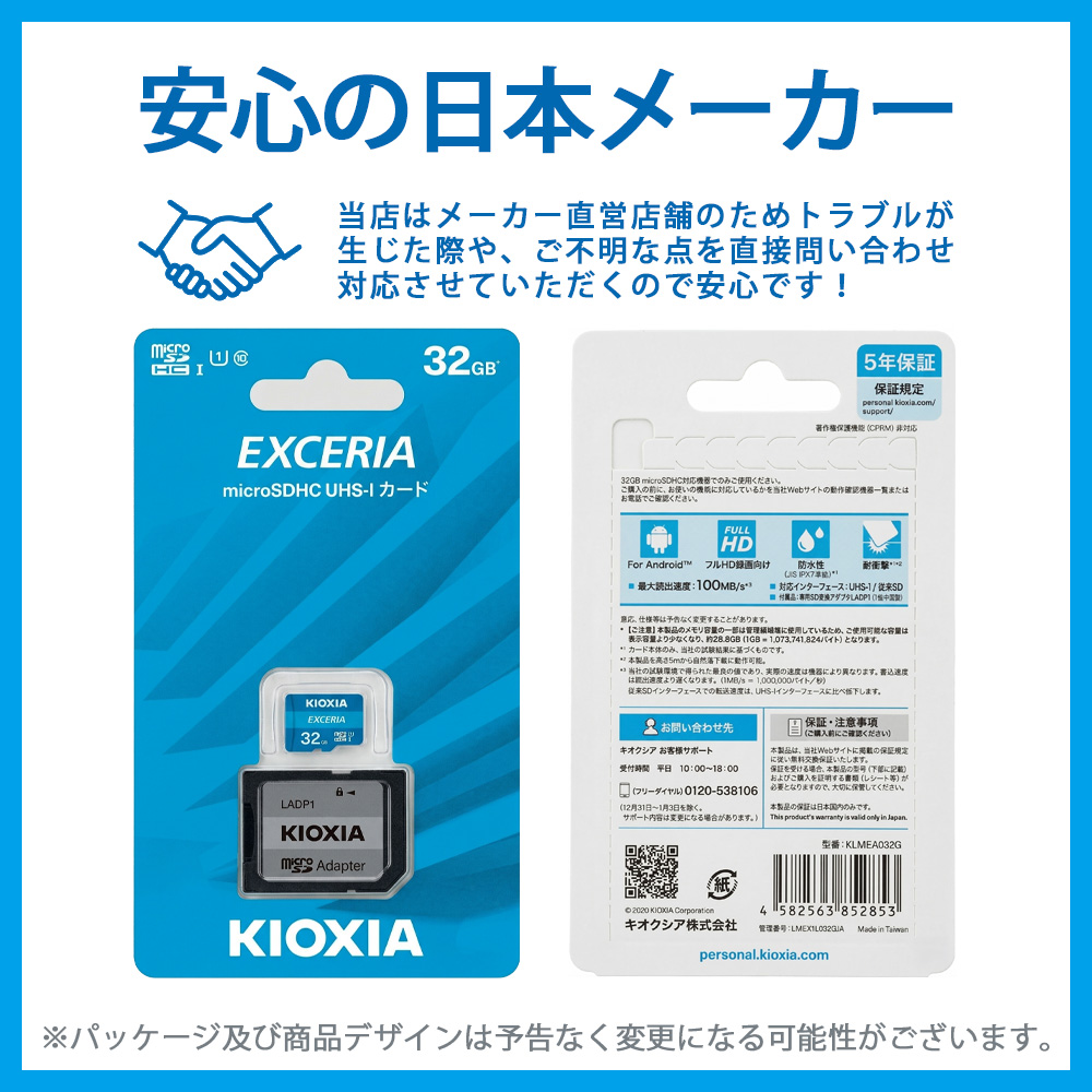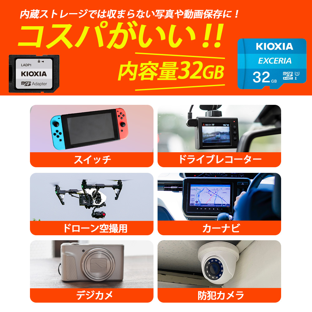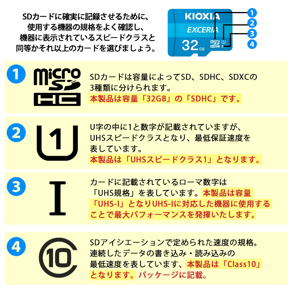 | ■ 製品構成 ・メモリカード 1枚 ■ 主な仕様 ・容量:32GB ・クラス:クラス10 ・書き込み禁止スイッチ付き 本商品は、ご注文時の在庫状況や入荷状況によりお送りさせていただきますSDカードのメーカーやパッケージが異なります。 メーカーやパッケージの指定はお受け出来かねますこと、予めご了承くださいませ。 360度撮影対応ドライブレコーダーやハイスペックモデルなどではご使用いただけない場合がございます。 万が一製品不良が見られた際は、一度カードフォーマットをお試しいただき、 改善されない場合は当店発行の納品書をご用意の上、 該当のメーカーにお問い合わせくださいませ。 |