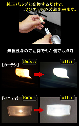 ●カーテシランプ・バニティランプ・ラゲッジなど幅広い箇所で使用できます。