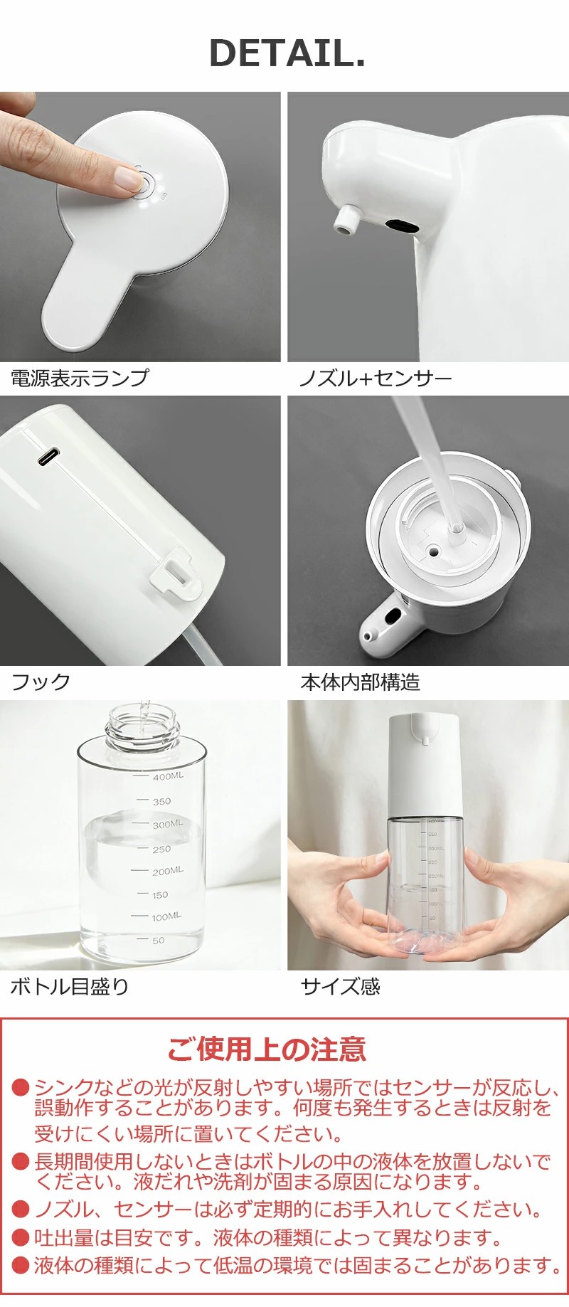 ■ 400ml大容量&4段階吐出量調整