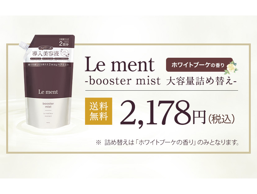 Le ment(ルメント)ブースターミスト 大容量詰め替え ホワイトブーケの香り 髪の導入美容液 ノンシリコン ヘアミスト 寝ぐせ直し 洗い流さないトリートメント