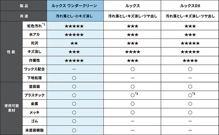 ・成分:石油系溶剤、界面活性剤、微粒子コンパウンド、シリコ−ンオイル