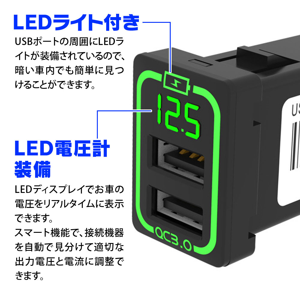 ・Quick Charge 3.2Aと2.4Aの2つのUSBポートを搭載し、2台同時にフルスピードで充電が可能です。