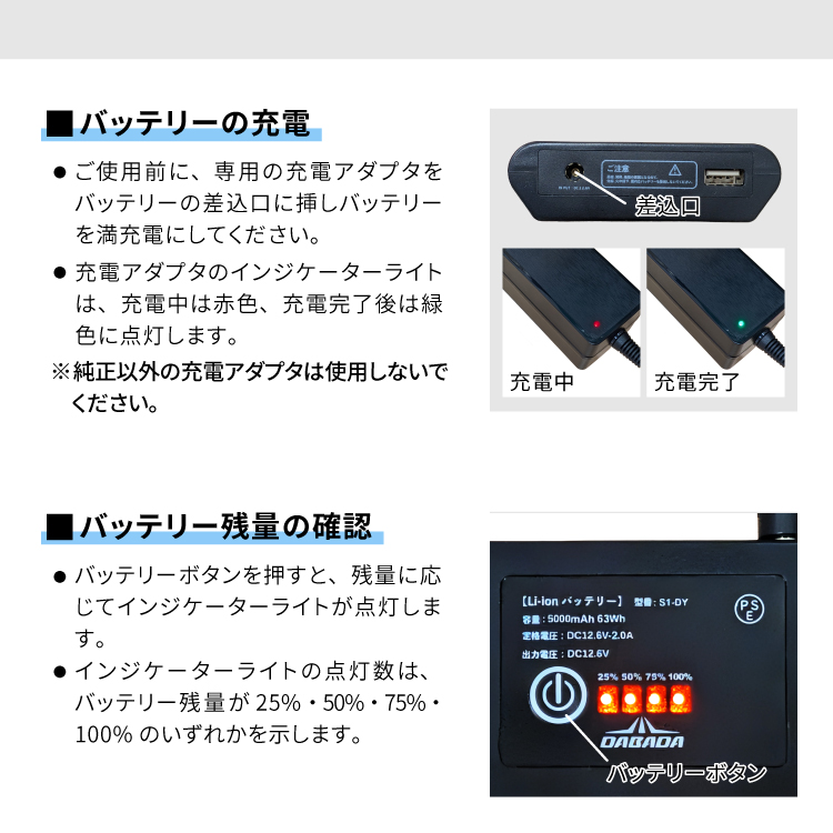 ・バッテリーにはUSB出力ポートがあり、スマートフォンなどを充電できます。