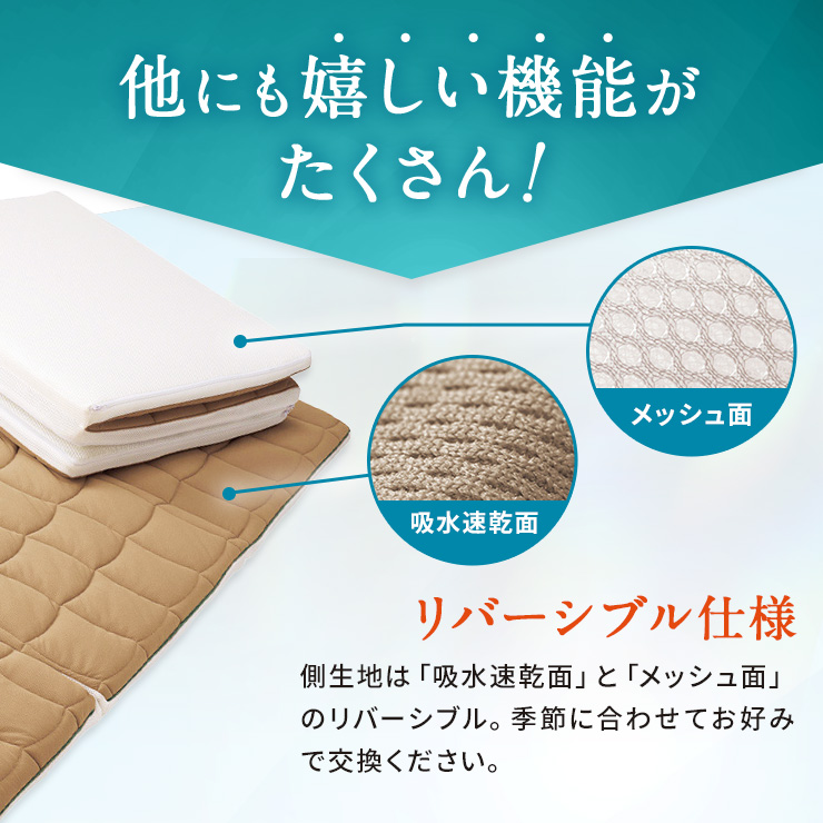 しかも今お使いのマットレスの上に重ねれば、寝心地がグレードアップ!だから敷布団派、ベッド派の方、両方におすすめです。