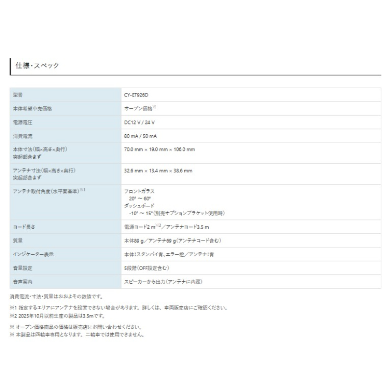 ETC パナソニック CY-ET926D 新セキュリティ スタンドアローン 単体使用 セットアップなし