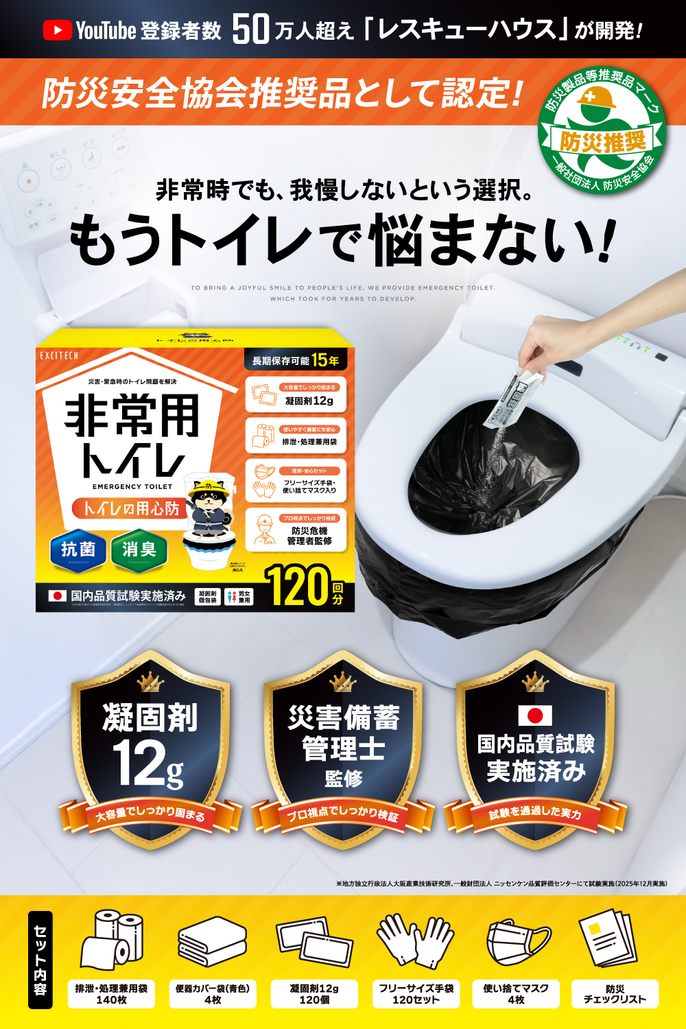 簡易トイレ (YouTube登録者数50万人の防災のプロが開発) 携帯トイレ 非常用トイレ 120回セット 15年保存 防災トイレ 災害用トイレ 防災グッズ ポータブルトイレ