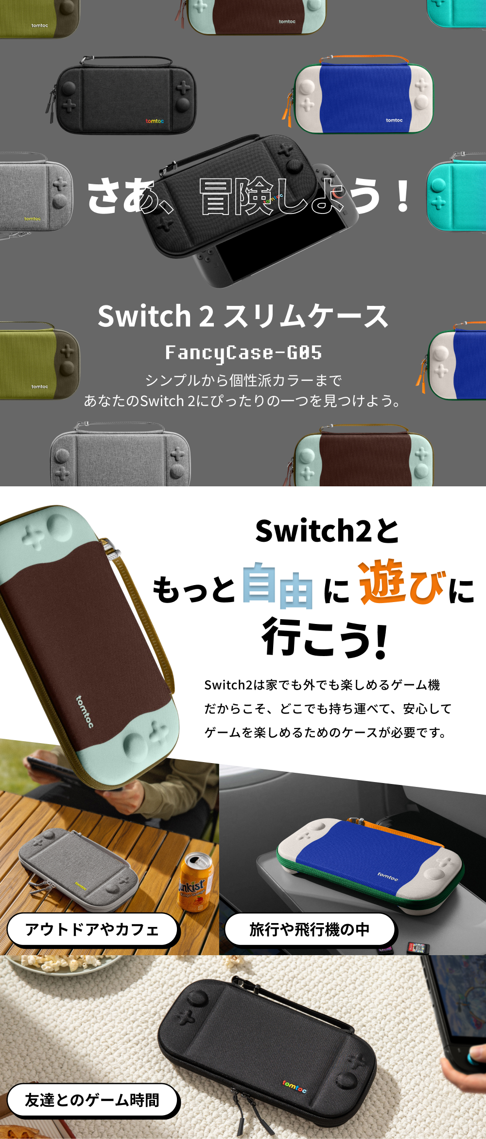 FancyCase-G05 Nintendo Switch 2対応 ハードケース tomtoc スイッチ2 スリムケース 持ち運び キャリングケース 耐衝撃 薄型 ゲームカード12枚収納 ポーチ