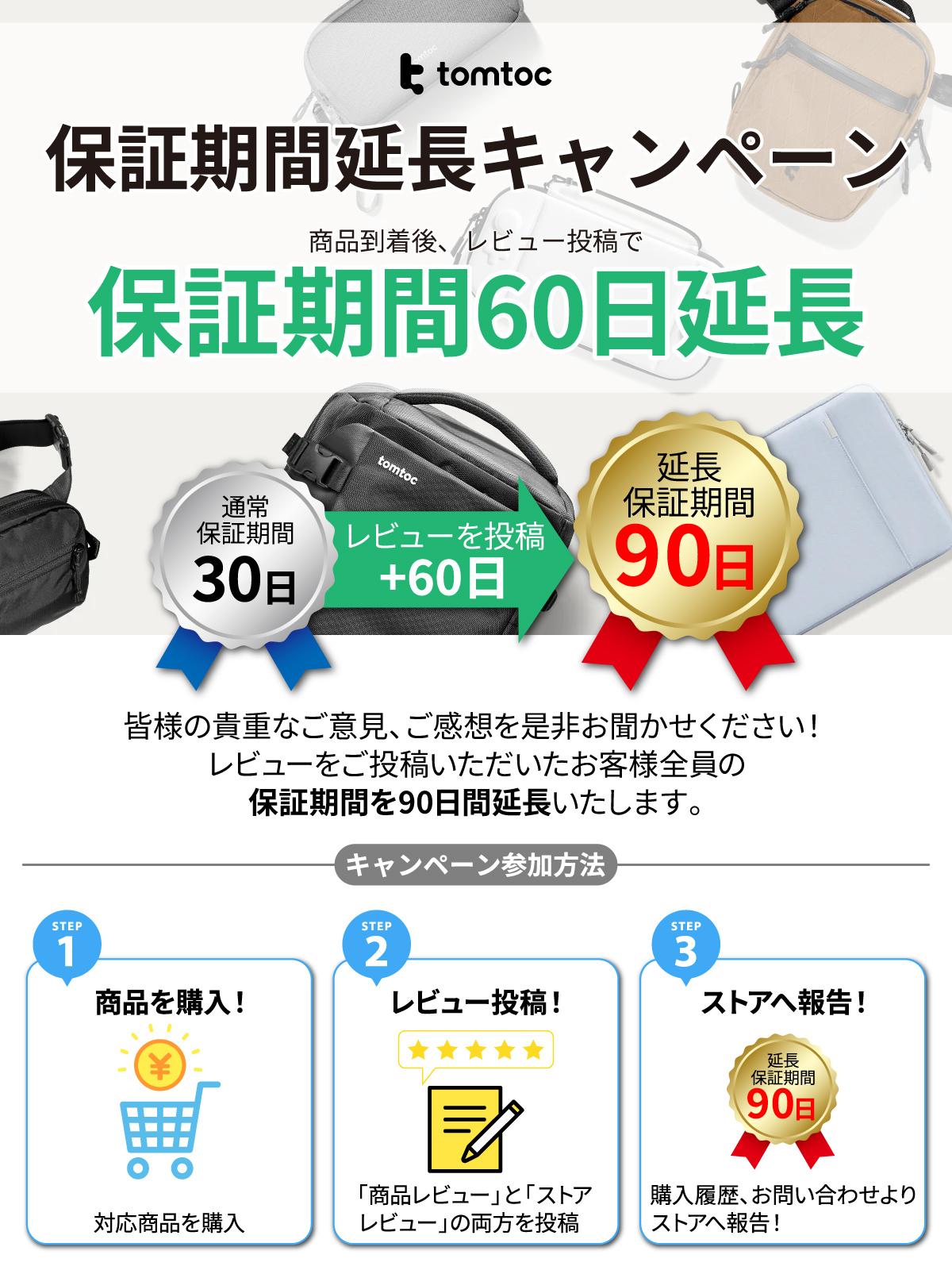 | 安心保証 | tomtoc製品は12ヶ月間安心保証付きます。 |