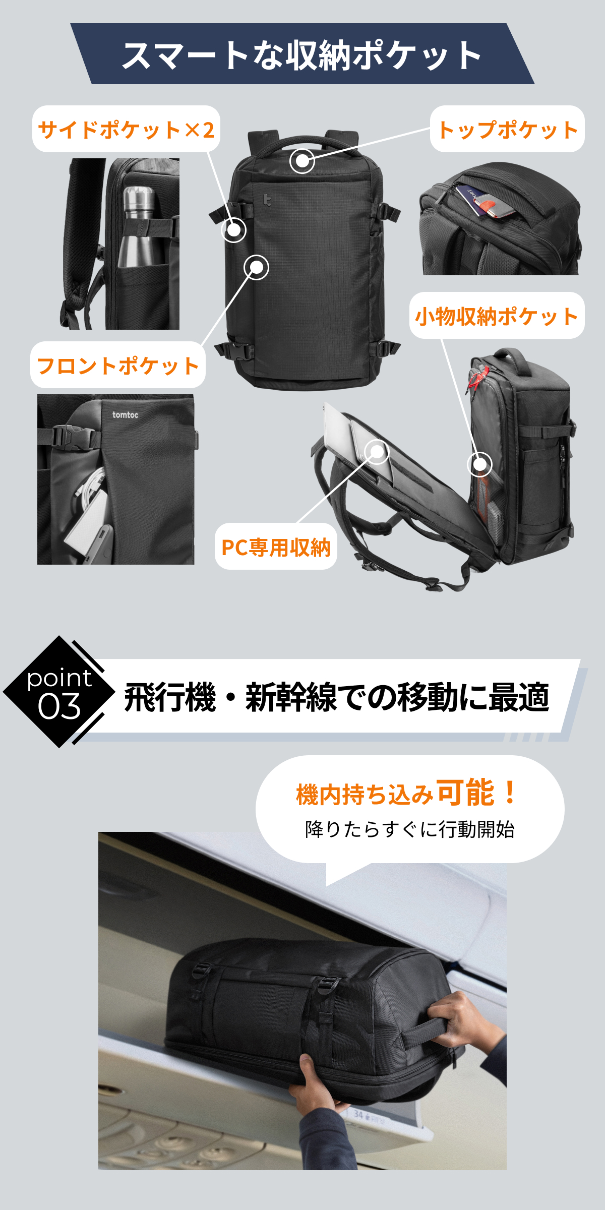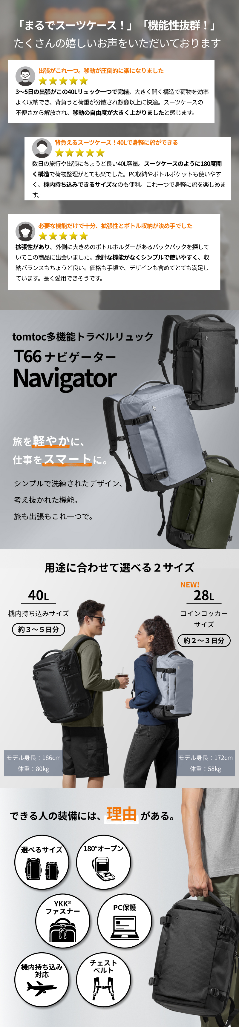 tomtoc T66 トラベルバックパック 28L 旅行 リュック 大容量 Navigator 機内持ち込み ビジネス バックパック バッグ リュックサック 撥水加工 海外旅行 トラベル