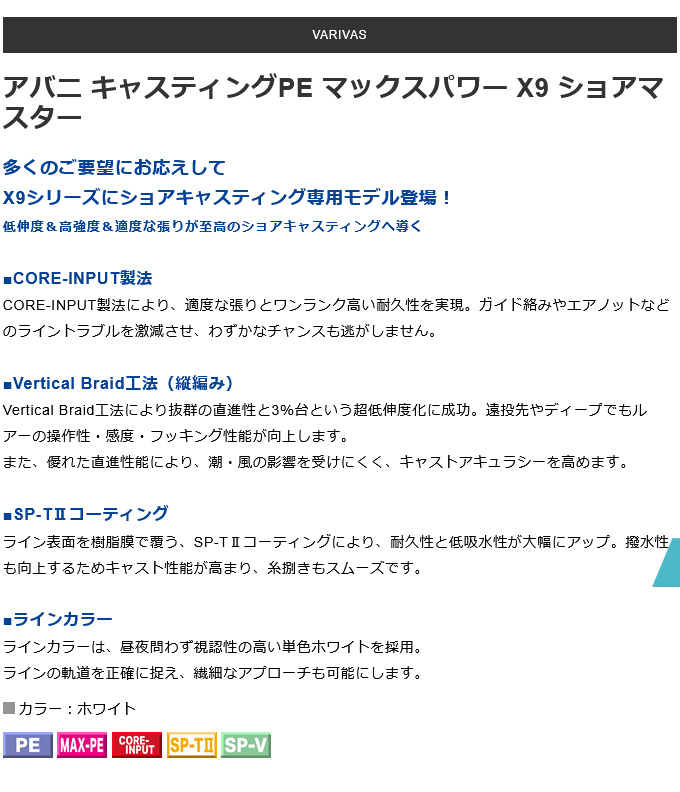 【取り寄せ商品】 バリバス アバニ キャスティングPE マックスパワー X9 ショアマスター (1.2号/200m) ホワイト (釣糸・PEライン) /(c) 【Σ01】