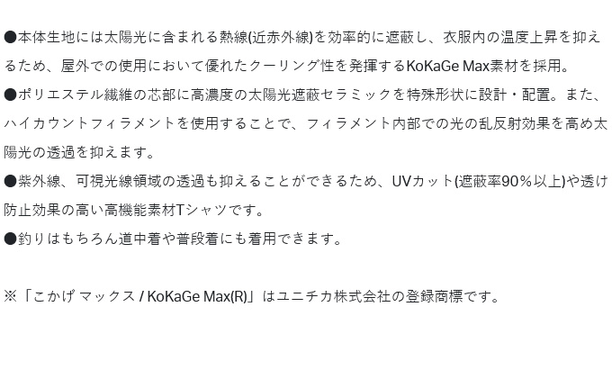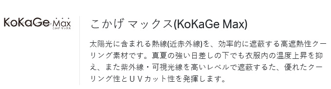 ※「こかげ マックス / KoKaGe Max(R)」はユニチカ株式会社の登録商標です。