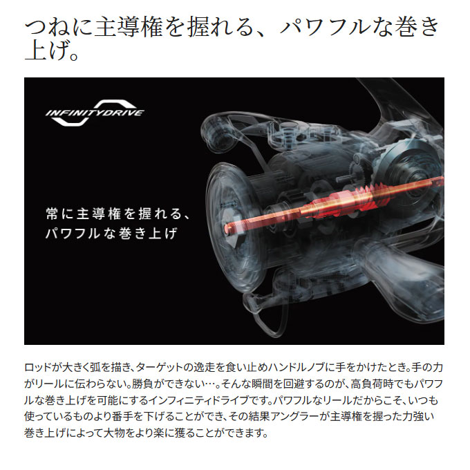 サーフをやるならまずこのモデル。ハンドル1回転101cmの巻上げスピードからくる圧倒的なラインスラック回収能力で、波にルアーを大きく手前に押された時や、横風でラインを大きく流された場合もタイムロスなくルアーを瞬時にアクション可能。ヒラスズキにも最適です。
