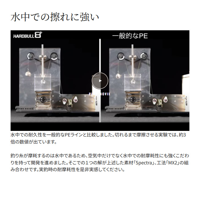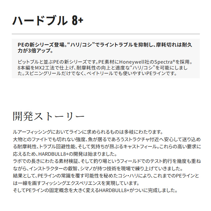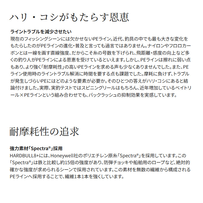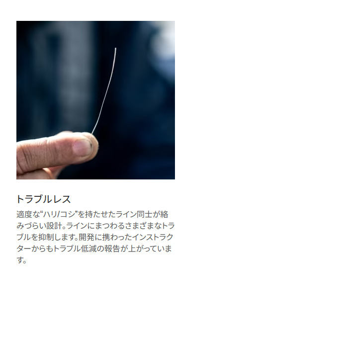 「ハリ/コシ」でライントラブルを抑制し、摩耗切れは耐久力が3倍アップ。