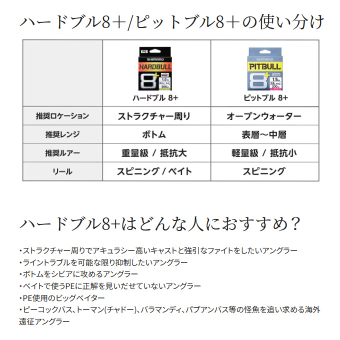 【SHIMANO HARDBULL 8+ 10m x 5カラー】