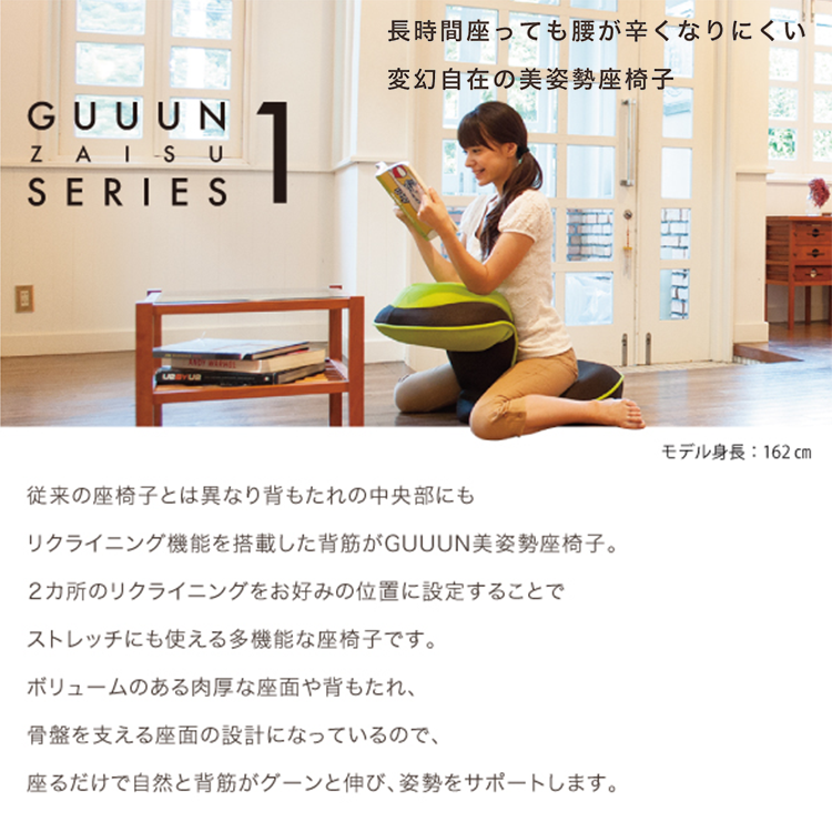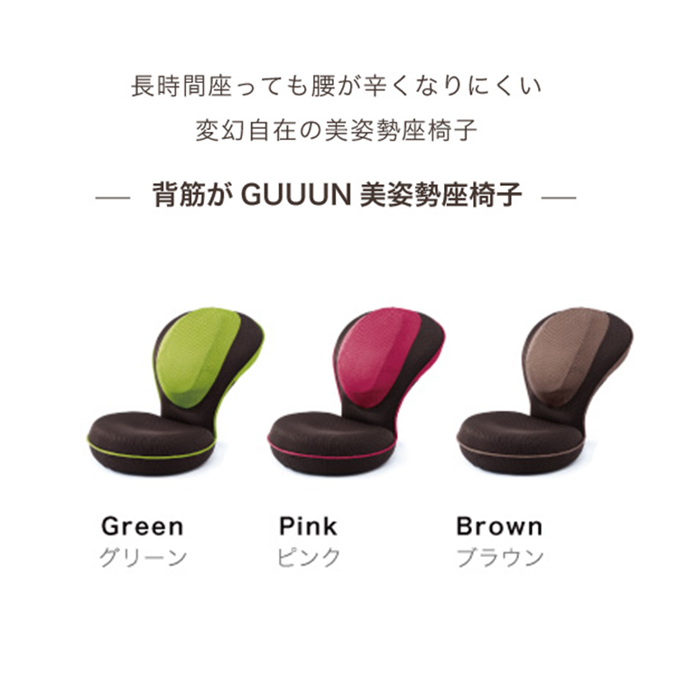 ![]() 背筋がGUUUN 美姿勢座椅子 長時間離れられなくなる居心地最高のプライベート座椅子。ストレッチにも使えます。 | ![]() 背筋がGUUUN 美姿勢座椅子リッチ 洗えるカバー付&高反発ウレタンでリッチな座り心地に! | ![]() 背筋がGUUUN 美姿勢座椅子コンパクト お子様の勉強時やゲームに♪座椅子としてだけでなく椅子の上でも使えます。 |