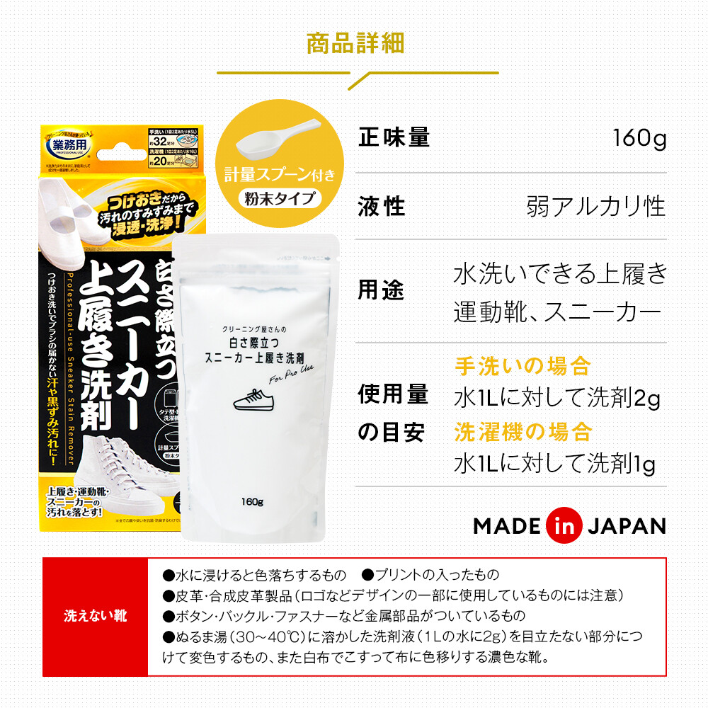 クリーニング屋さんの白さ際立つスニーカー上履き洗剤 160g スニーカー洗剤 運動靴 上履き つけおき洗剤 汚れ落とし 洗濯機対応 3719【ネコポス発送】