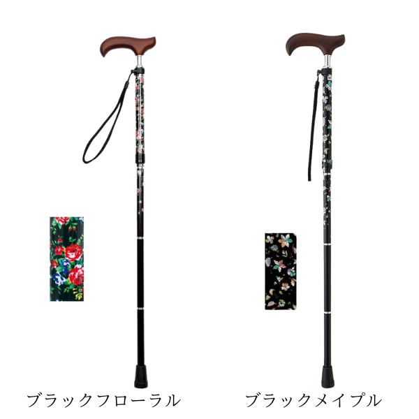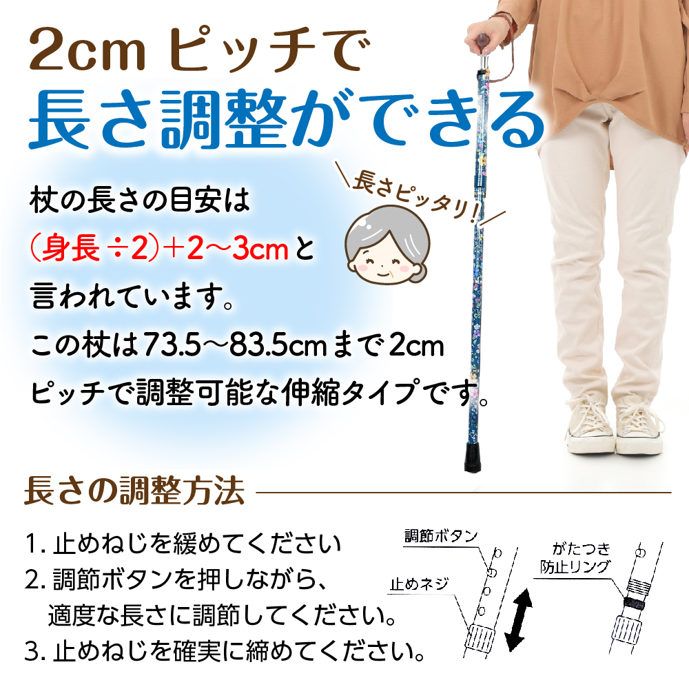 ステッキ かっこいい 足ゴム 安定 柄 デザイン コンパクト 高齢者 先ゴム ささえ 支え 散歩 高さ調節 補助 ピンク ギフト プレゼント グリップ 母の日 父の日 敬老の日