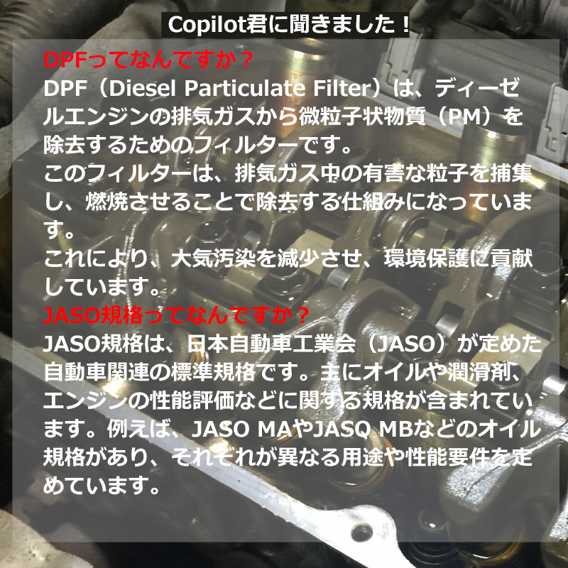 ●排出ガス規制対応のDPFを装備した乗用車及び商用車に 最適な高性能エンジンオイルです。