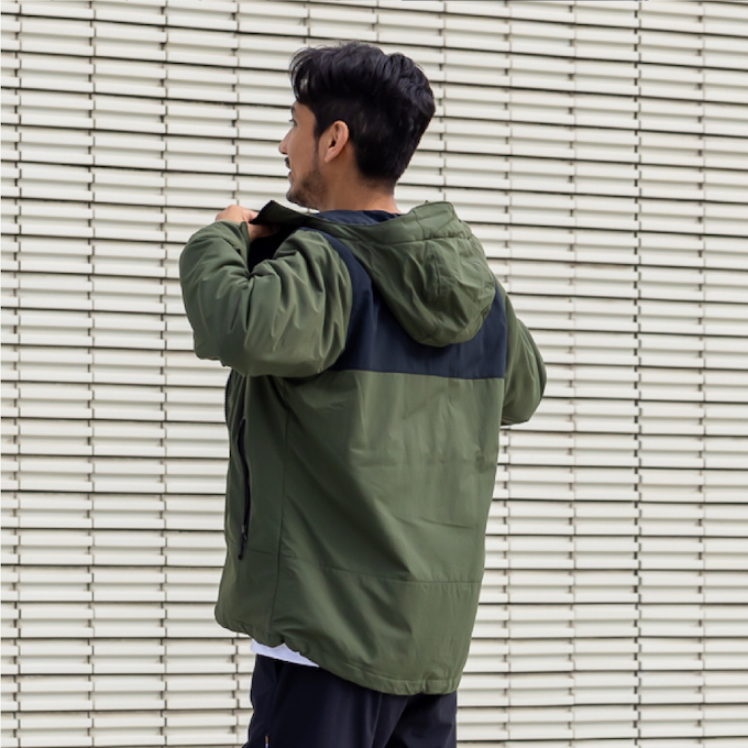 ■素材:表/ナイロンタッサー(ナイロン100%) 裏/タフタ(ナイロン100%) 中わた/マイクロテンプXFII(リサイクルポリエステル85% ポリエステル15%)
