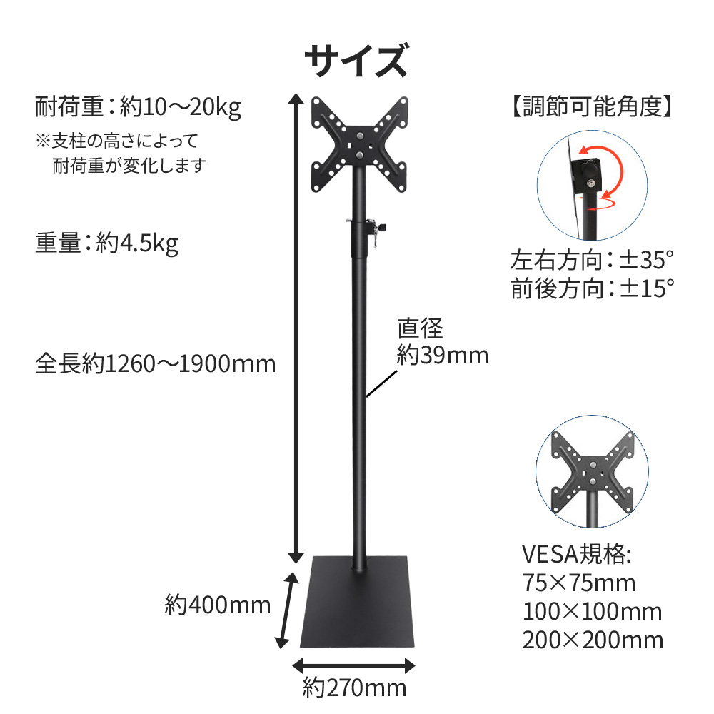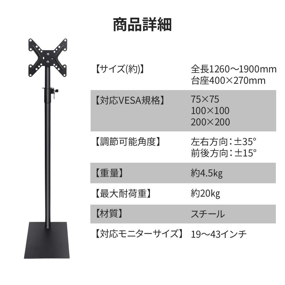 ディスプレイスタンド モニター 画面 液晶 パソコン パソコンスタンド v 取付 取り付け 設置 19インチ 24インチ 32インチ 37インチ 40インチ 43インチ 130954 法人 壁寄せテレビスタンド TVスタンド TV台