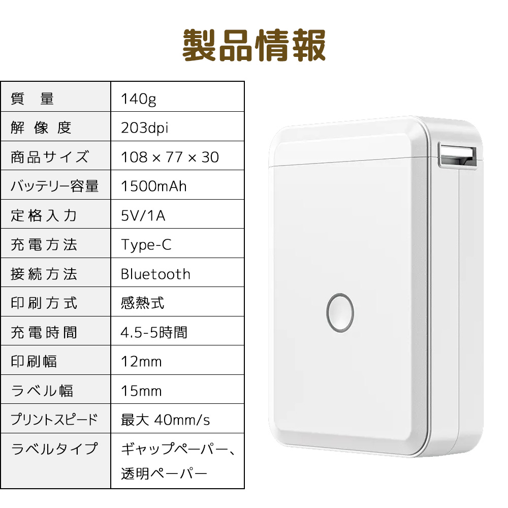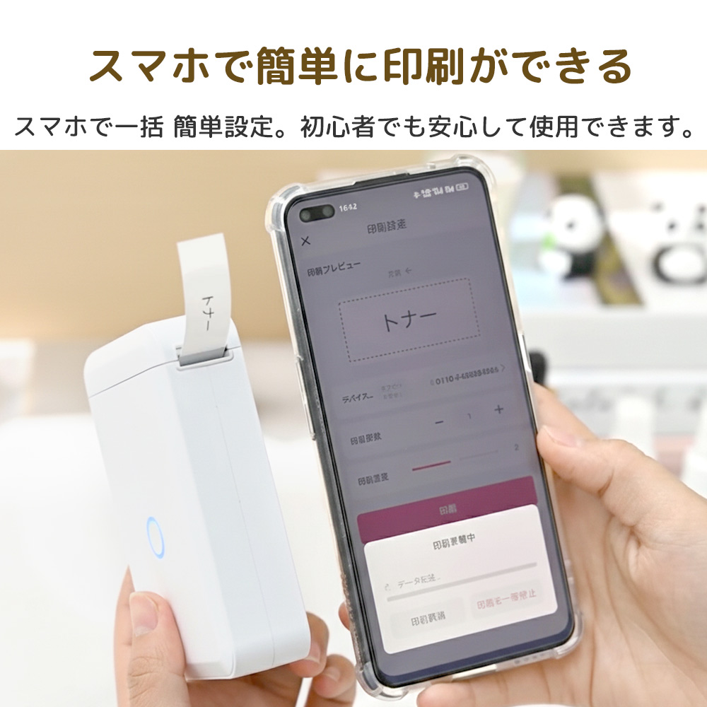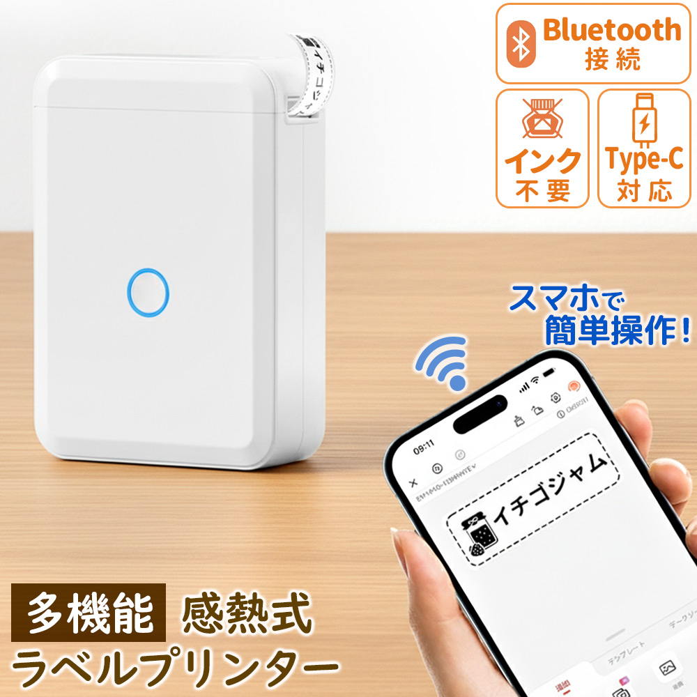 ラベルプリンター ラベルライター 本体 感熱式 スマホ 対応 家庭用 Bluetooth ラベルシール テープライター android iPhone 名前シール お名前シール シンプル