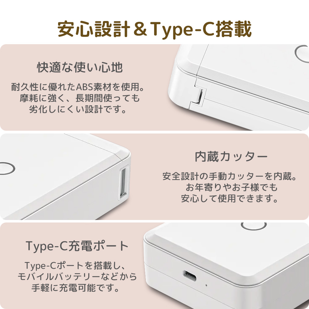 付属品:お試しテープ、Type-Cケーブル、取り扱い説明書